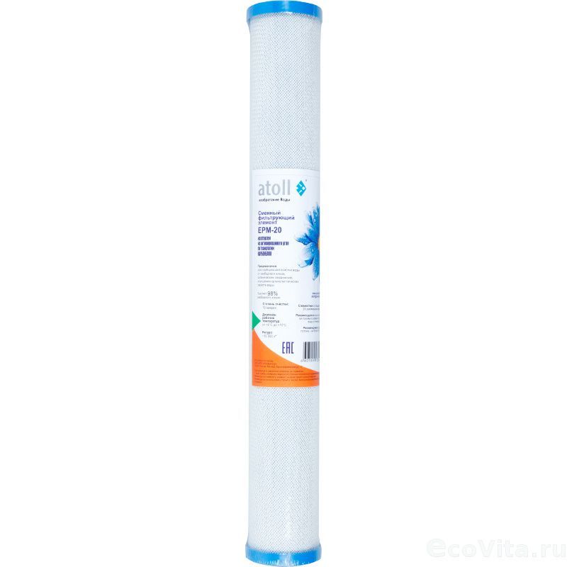 Фильтрующий сменный элемент Atoll EPM-20 предназначен для улучшения вкуса и запаха воды. Обладает увеличенным ресурсом по хлору. Конструкция модуля позволяет использовать картридж до полного истощения абсорбционной способности и максимально использовать фильтрующую способность угля. Модуль изготовлен по уникальной технологии карбон-блок. Потери давления внутри сменного элемента незначительны.