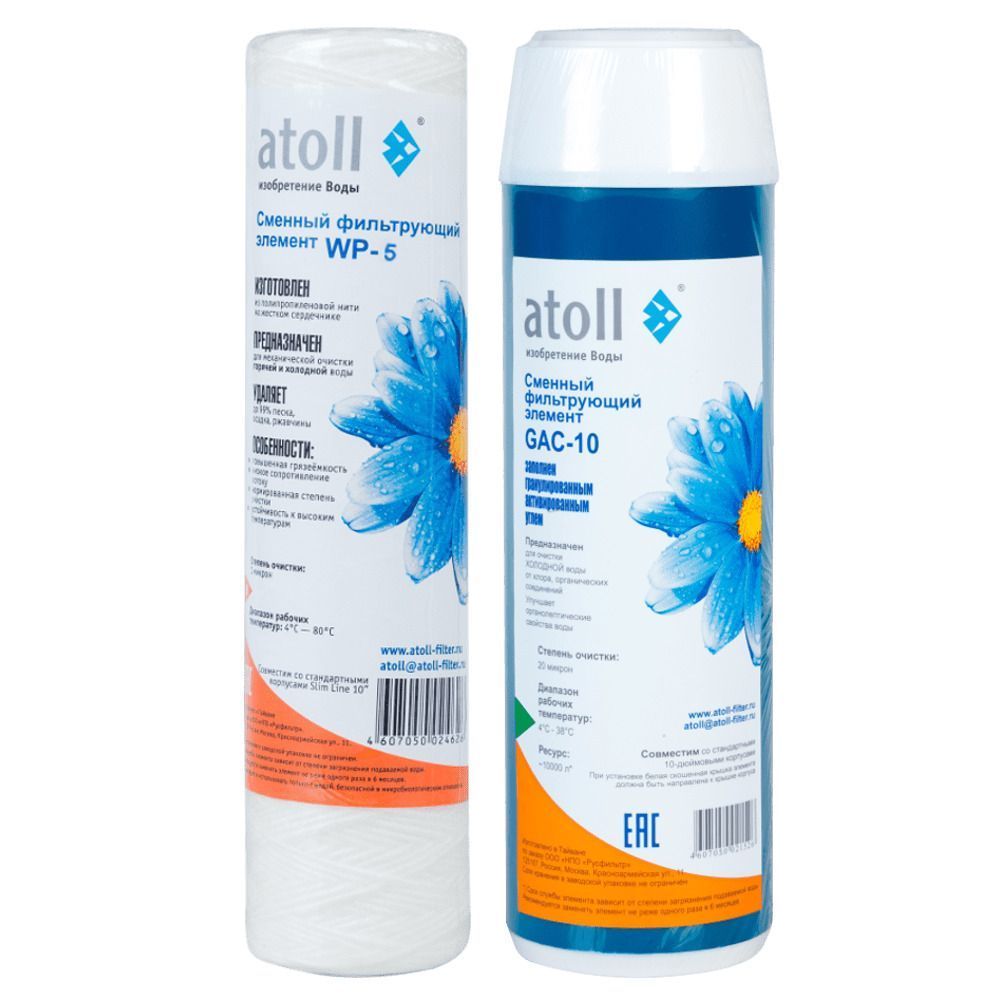 - Угольный картридж Atoll GAC-10 для очистки воды от хлора и летучих органических соединений; улучшает органолептические свойства воды; задерживает частицы до 7 мкм.