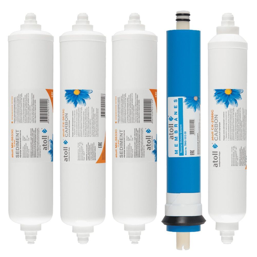 Полный набор картриджей Atoll №106m STDA предназначен для замены использованных элементов в системах обратного осмоса. Содержит 3 картриджа для блока предфильтрации, мембрану и минерализатор. Подходит для моделей A-550m box, A-550E Sailboat. Рекомендуемый срок замены: 24 месяца.