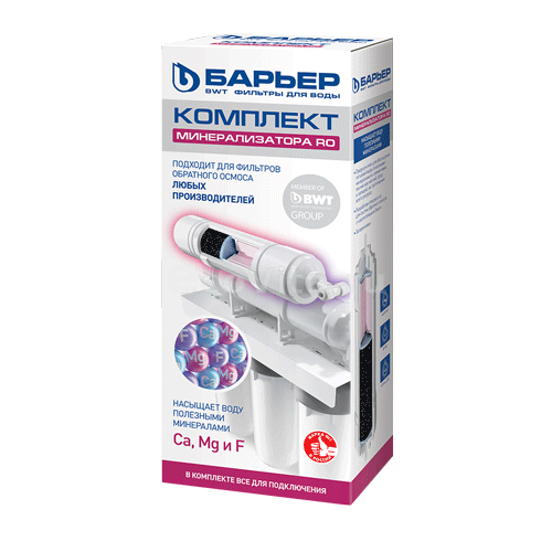 Комплект минерализатора Барьер Профи RO предназначен для нормализации баланса минералов в воде, прошедшей обработку фильтрами обратного осмоса. Устанавливается на корпус обратноосмотической системы любого производителя.
