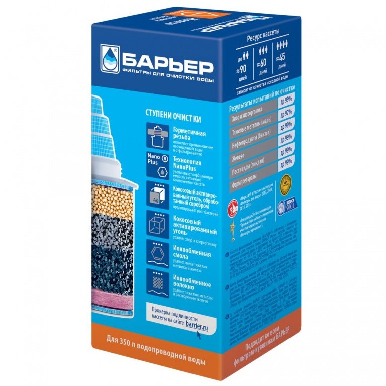 - технология NanoPlus: увеличивает сорбционную ёмкость активных компонентов картриджа.