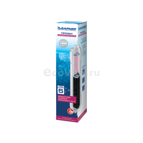 Барьер Профи Минерализатор RO используется в качестве постфильтра для нормализации баланса минералов в воде, прошедшей обработку фильтрами Барьер Профи Осмо 100 М или Профи Осмо 100 Boost М.