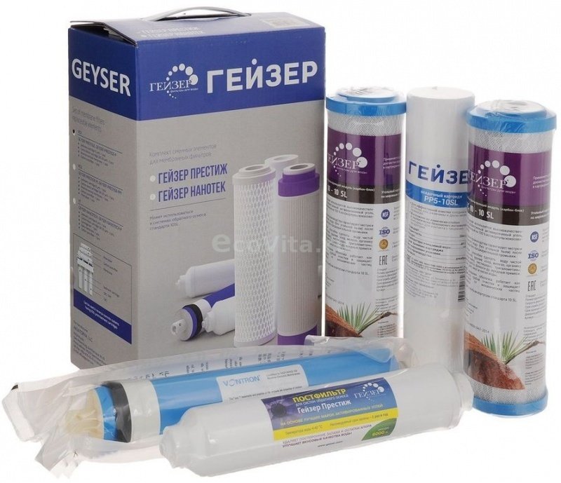 Комплект сменных элементов Гейзер RO1 - это набор сменных картриджей к фильтрам Гейзер Аллегро, Аллегро П, Престиж и Престиж П. Рекомендуемый срок полной замены модулей и мембраны составляет 2 года.