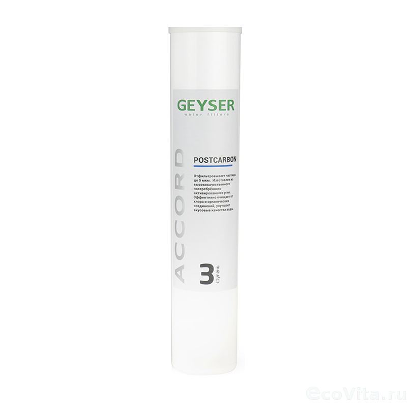 Угольный картридж Гейзер Postcarbon Accord предназначен для систем очистки воды Гейзер Accord. Картридж изготовлен из высококачественного посеребрённого активированного угля на основе скорлупы кокосового ореха. Удаляет из воды хлор и органические загрязнения, улучшает вкусовые качества воды. Придает воде кристальную чистоту и прозрачность.