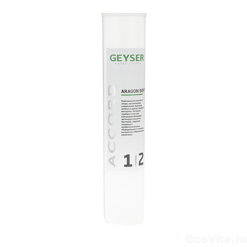 Комбинированный картридж для мягкой воды Гейзер Арагон Soft Accord предназначен для систем очистки воды Гейзер Accord. Картридж эффективно очищает воду от вредных примесей, таких как железо, марганец, хлор, органика и тяжелые металлы, а также сохраняет природную минерализацию. В картридже Aragon Soft Accord реализована технология сорбции и ионного обмена.
