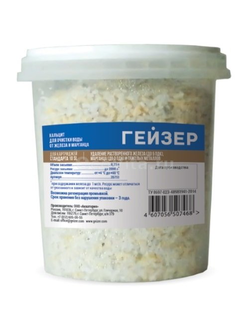 Гейзер Сменная засыпка БА-10SL предназначена для эффективного удаления избыточного растворенного железа (до 1,5 мг/л) методом каталитического окисления. Есть возможность восстановления регенерирующей способности с помощью промывки.