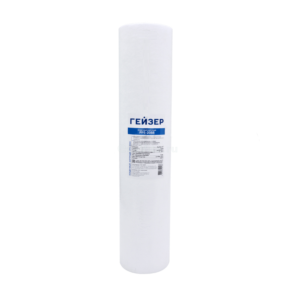 Сменный картридж Гейзер PP 5-20BB предназначен для механической очистки воды от нерастворимых примесей. Вспененный полипропилен фильтрует воду от ржавчины, грязи, песка и других примесей размерами более 5 мкм. Использованный картридж не подлежит восстановлению и регенерации. После окончания ресурса требуется замена на новый. PP 5-20BB применяется в магистральном фильтре Гейзер Джамбо 20.