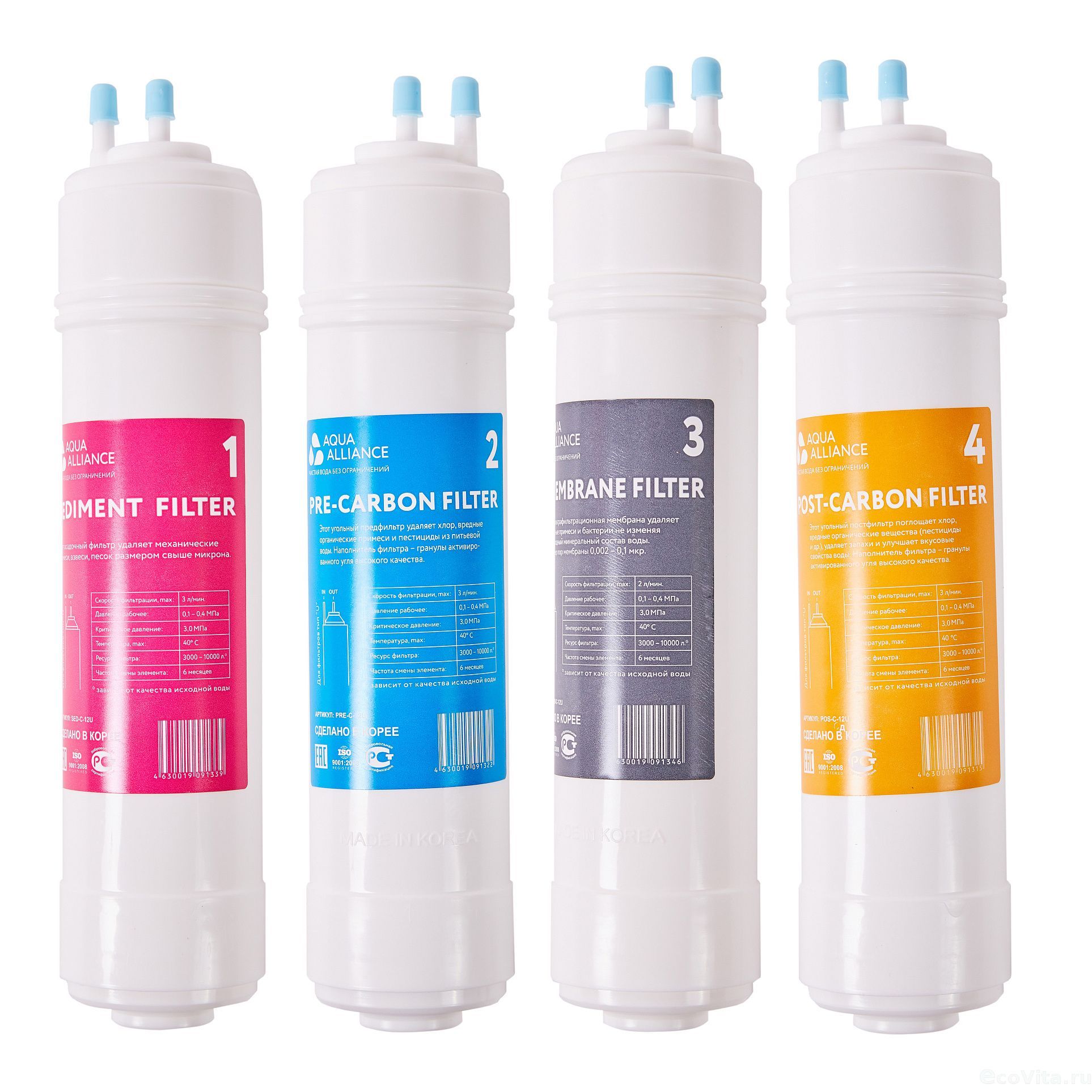 - Угольный постфильтр для финальной доочистки воды и улучшения ее вкуса (поток: 4,5 л/мин)