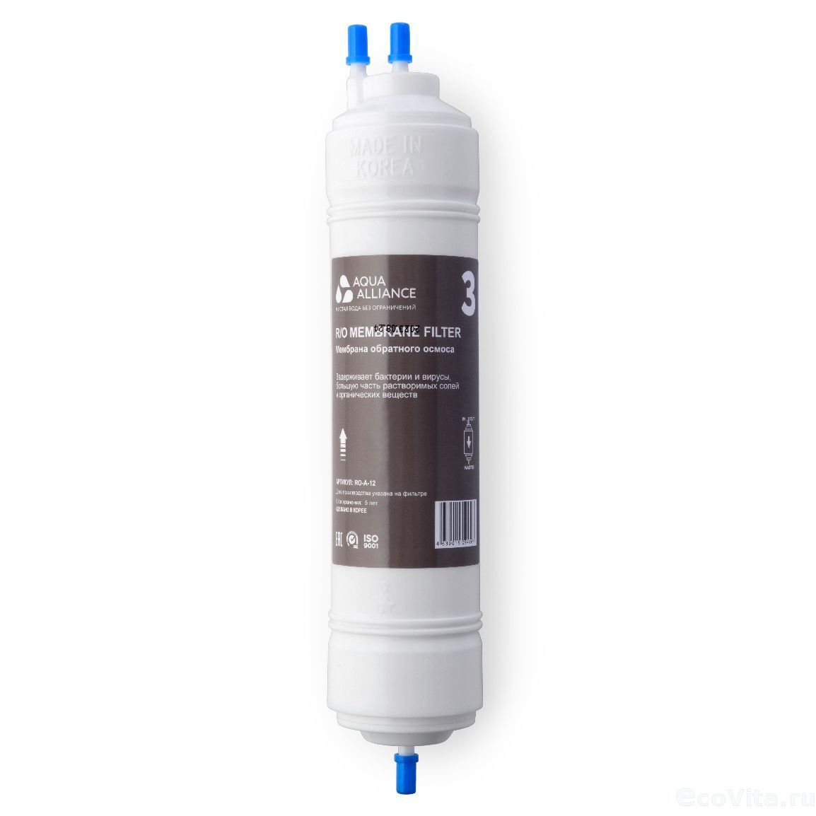 Мембрана обратного осмоса Aquaalliance RO-A-12 80GPD. Размер 12". Производительность 80GPD (~300л./сутки). Имеет выходы для быстрого соединения типа цанга-цанга.