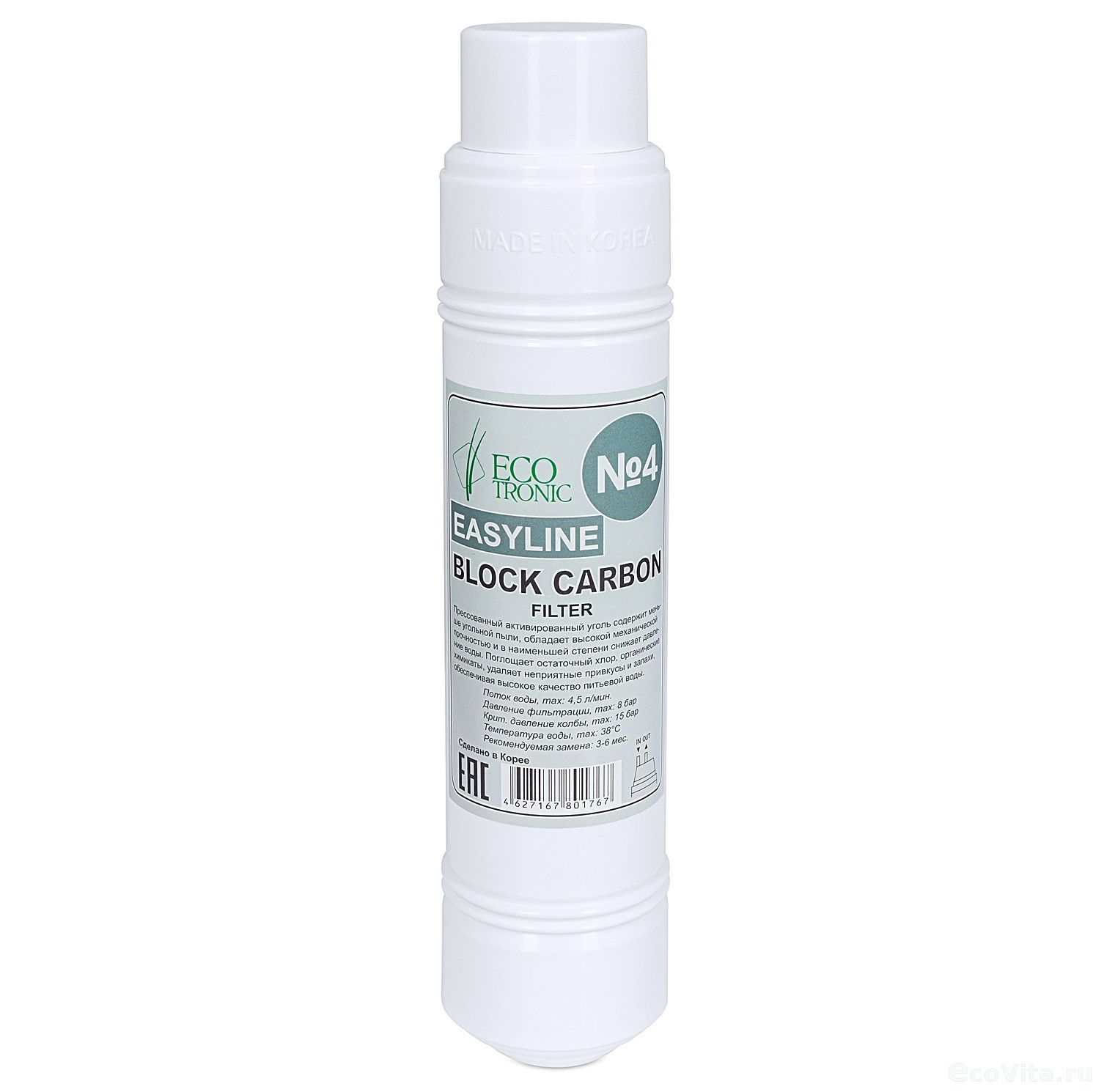 Угольные картриджи Ecotronic EasyLine 12" U-тип block carbon эффективно очищает воду от посторонних запахов, хлорида, радона и более ста видов органических и химических веществ.