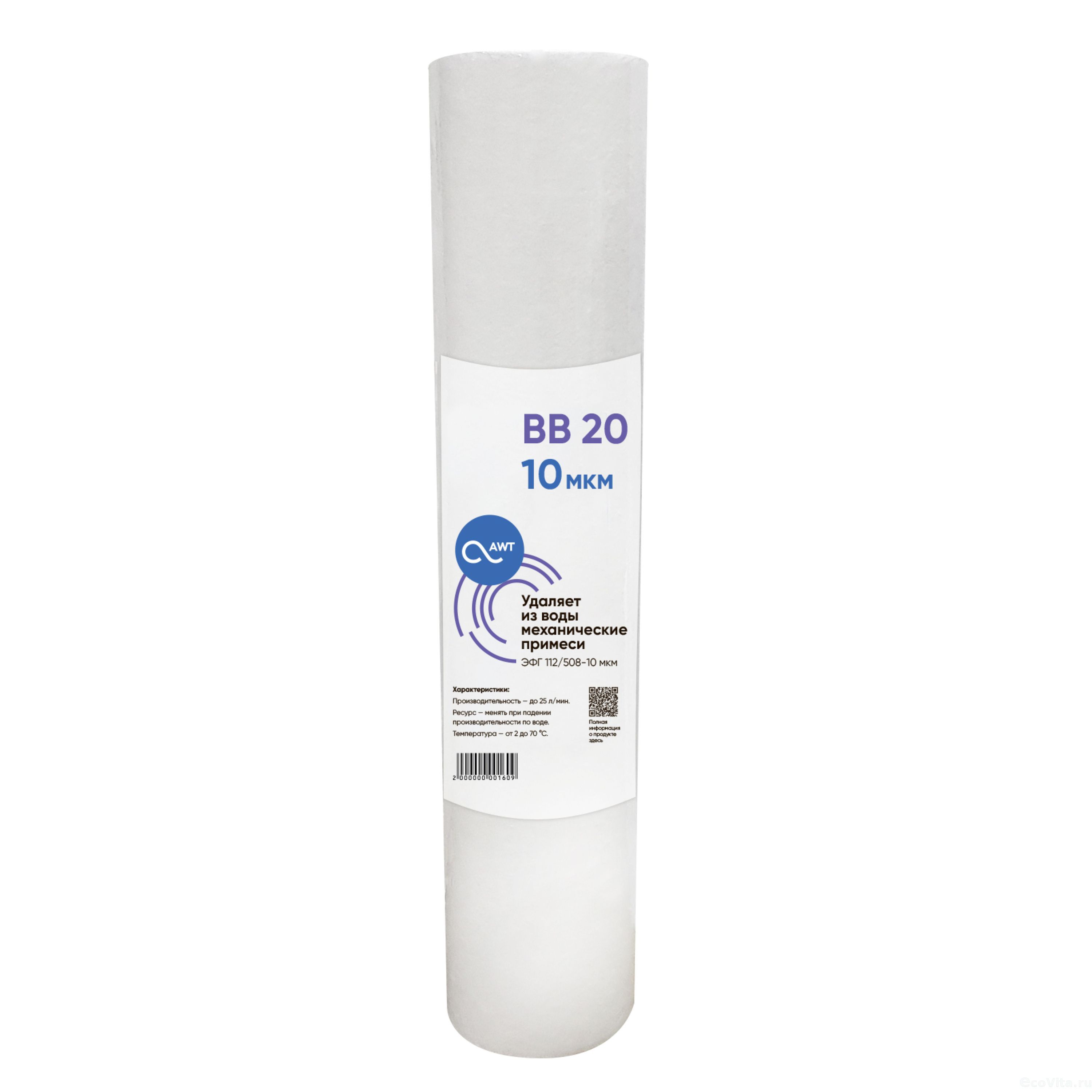 Картридж механической очистки AWT 112/508-10 (BB20) предназначен для эффективного удаления взвешенных частиц из воды. Данный сменный модуль подходит ко всем типам стандартных фильтрующих патронов. Применяется для холодного водоснабжения.