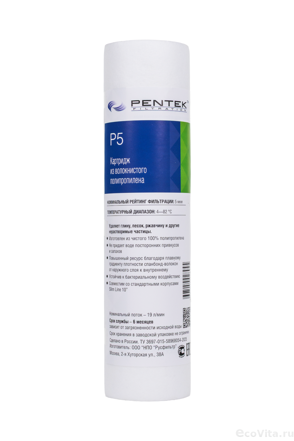 Картридж Pentek Filtration P5 изготовлен из стопроцентного полипропилена. Предназначен для очистки воды от механических примесей, обладает высокой устойчивостью к воздействию бактерий и химикатов. Пригоден к использованию в бытовых целях, а также в коммерческих и промышленных системах очистки воды.
