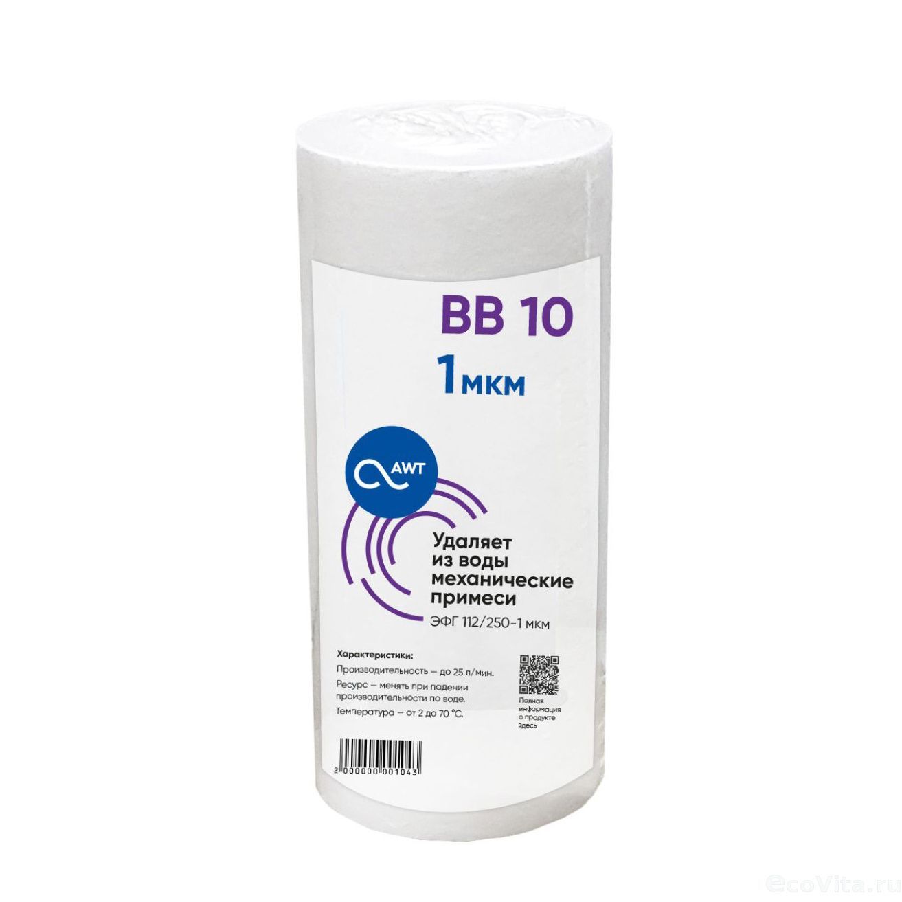 Картридж механической очистки AWT 112/250-1 (BB10) серии ЭФГ предназначен для эффективного удаления взвешенных частиц из воды. Данный сменный модуль подходит ко всем типам стандартных фильтрующих патронов. Применяется для холодного водоснабжения.