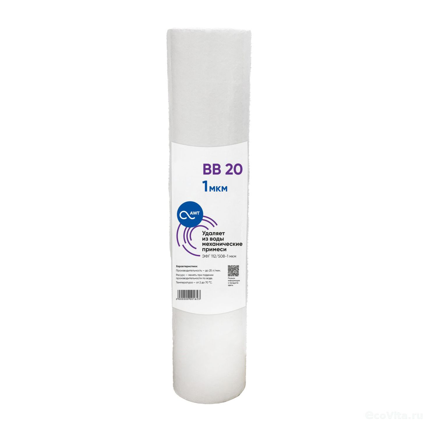 Картридж механической очистки AWT 112/508-1 (BB20) серии ЭФГ предназначен для эффективного удаления взвешенных частиц из воды. Данный сменный модуль подходит ко всем типам стандартных фильтрующих патронов. Применяется для холодного водоснабжения.