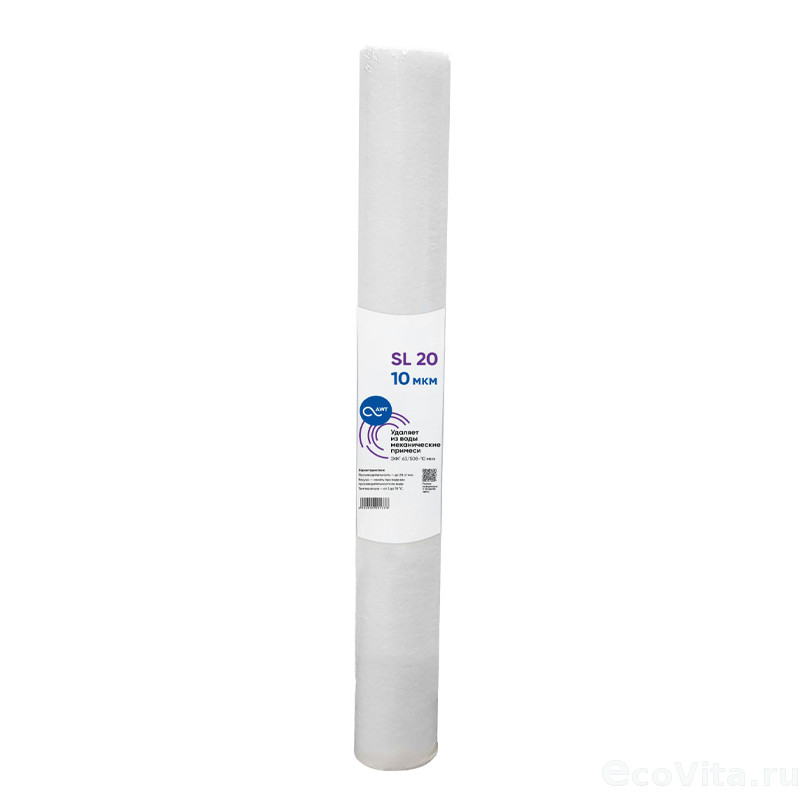 Картридж механической очистки AWT ЭФГ 63/508-10 (SL20) предназначен для механической очистки холодной воды. Картридж изготовлен из полипропилена и очищает воду от от песка, грязи и других нерастворимых примесей.