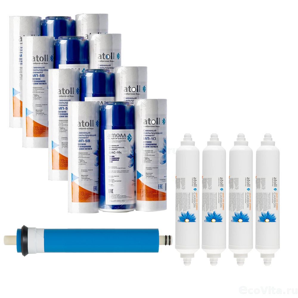 - 4 шт. - Набор картриджей Atoll №202 Патриот предназначен для замены использованных элементов в системах обратного осмоса. Содержит три предфильтра. Подходит для моделей A-550/575 Патриот. Рекомендуемый срок замены: 6 месяцев;