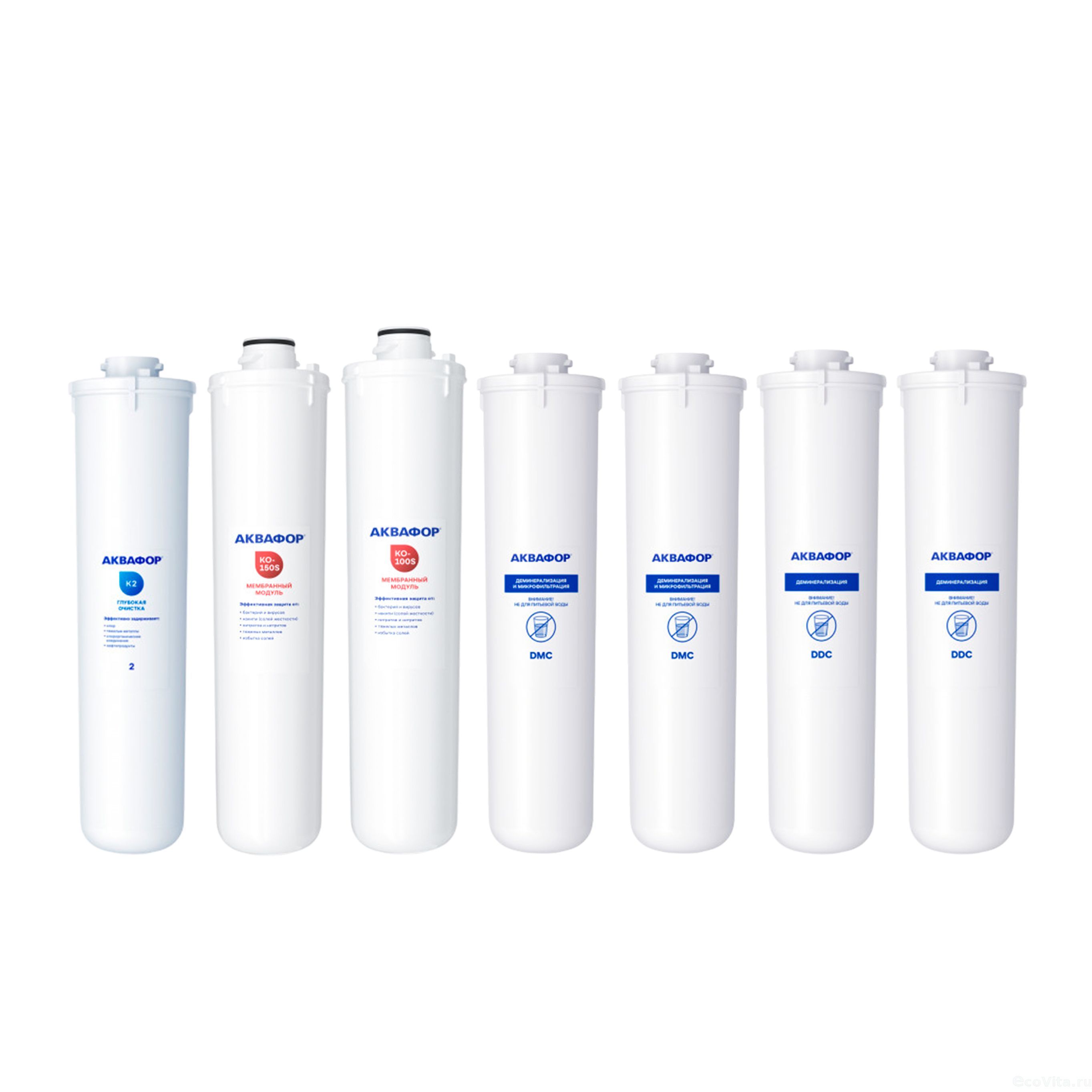- Модуль сменный мембранный КО-150S (1 шт.) – очищает воду от органических и неорганических соединений, бактерий, вирусов, цист.