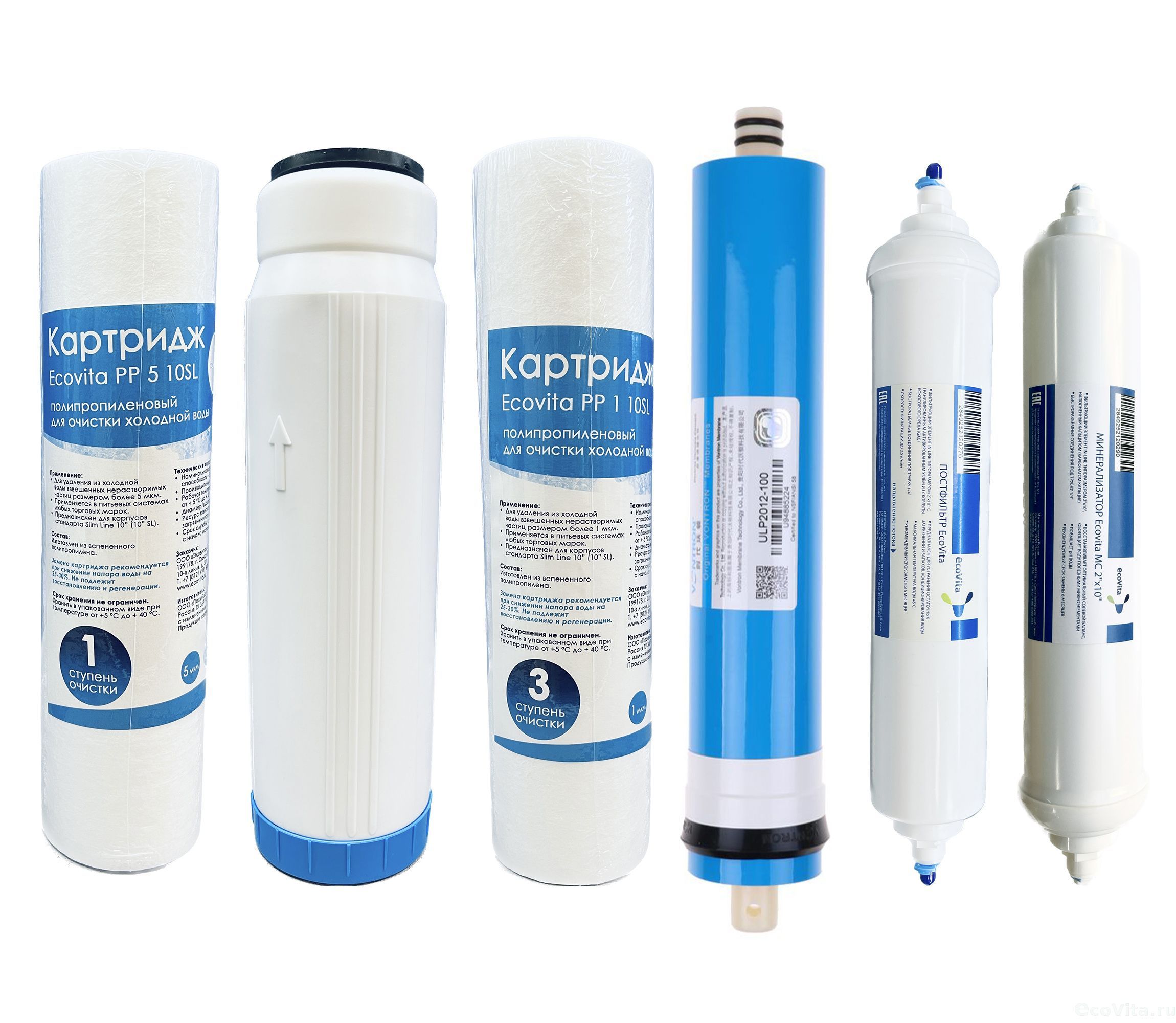 Набор Ecovita для систем обратного осмоса 6-100М состоит из: