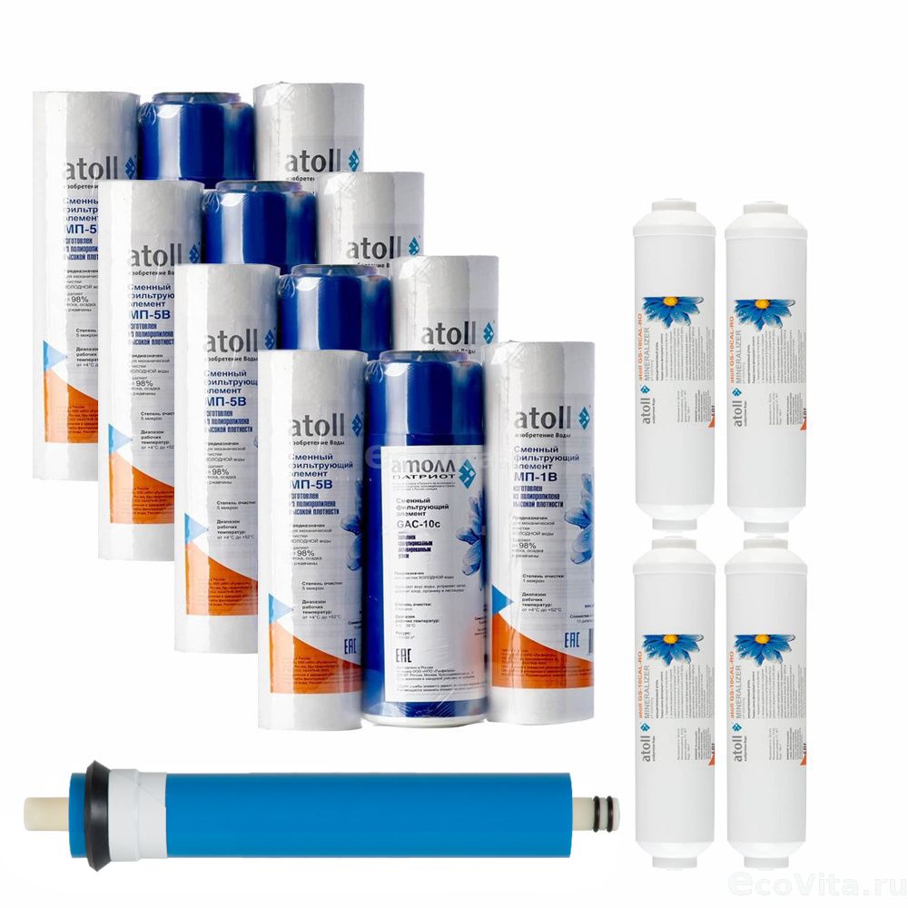Комплект картриджей Atoll предназначен для замены использованных элементов в системах обратного осмоса. Подходит для моделей A-550/575 Патриот. Срок эксплуатации рассчитан на 2 года.