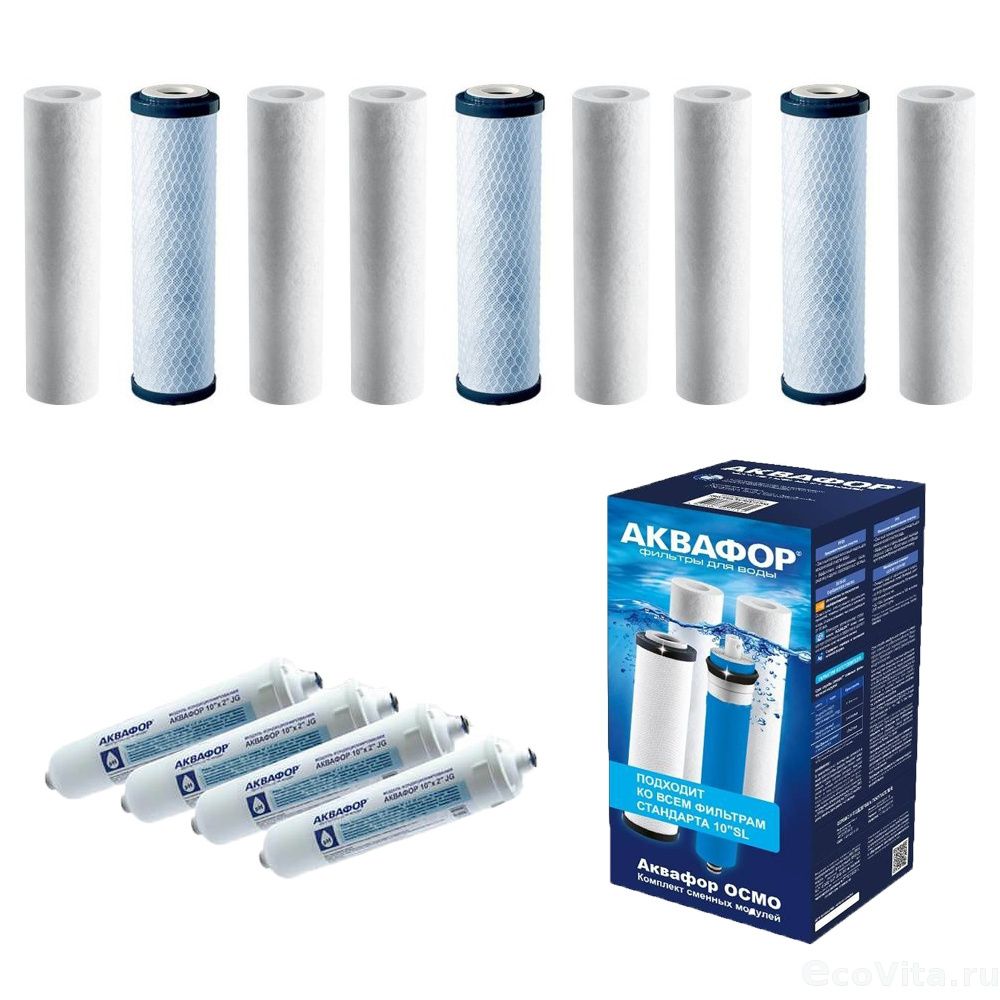 Комплект картриджей для Аквафор Осмо 50 и 50 ПН рассчитан на непрерывную работу фильтра в течении 2 лет.