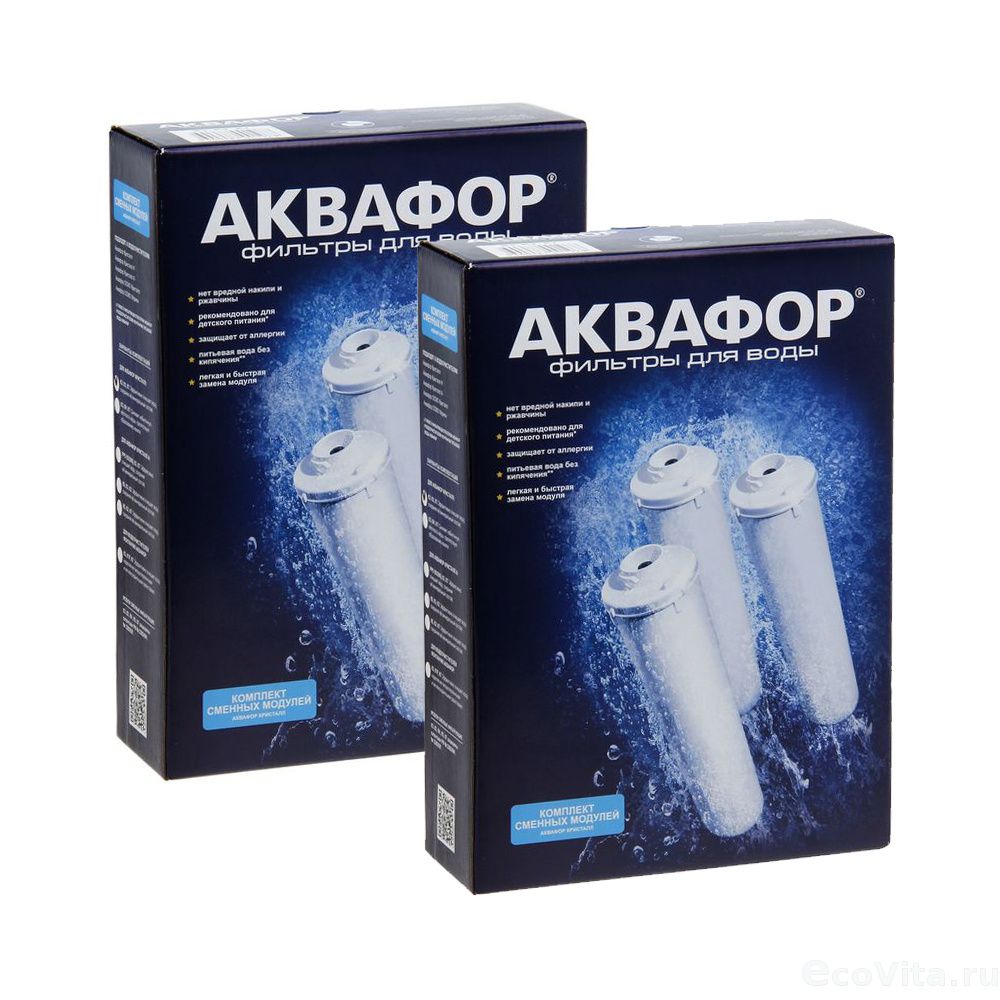 Комплект сменных картриджей на 2 года для Аквафор Кристалл А состоит из 2-ух наборов Аквафор K3-K2-K7.