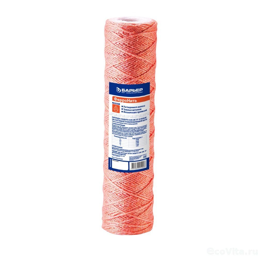 Сменный картридж Барьер ФерроНить 10SL предназначен для очистки водопроводной воды из центральных источников водоснабжения с высоким содержанием растворенного железа и тяжелых металлов. Элемент изготовлен из специального полипропиленового волокна и волокнистого ионита. Микронность 10 мкм.