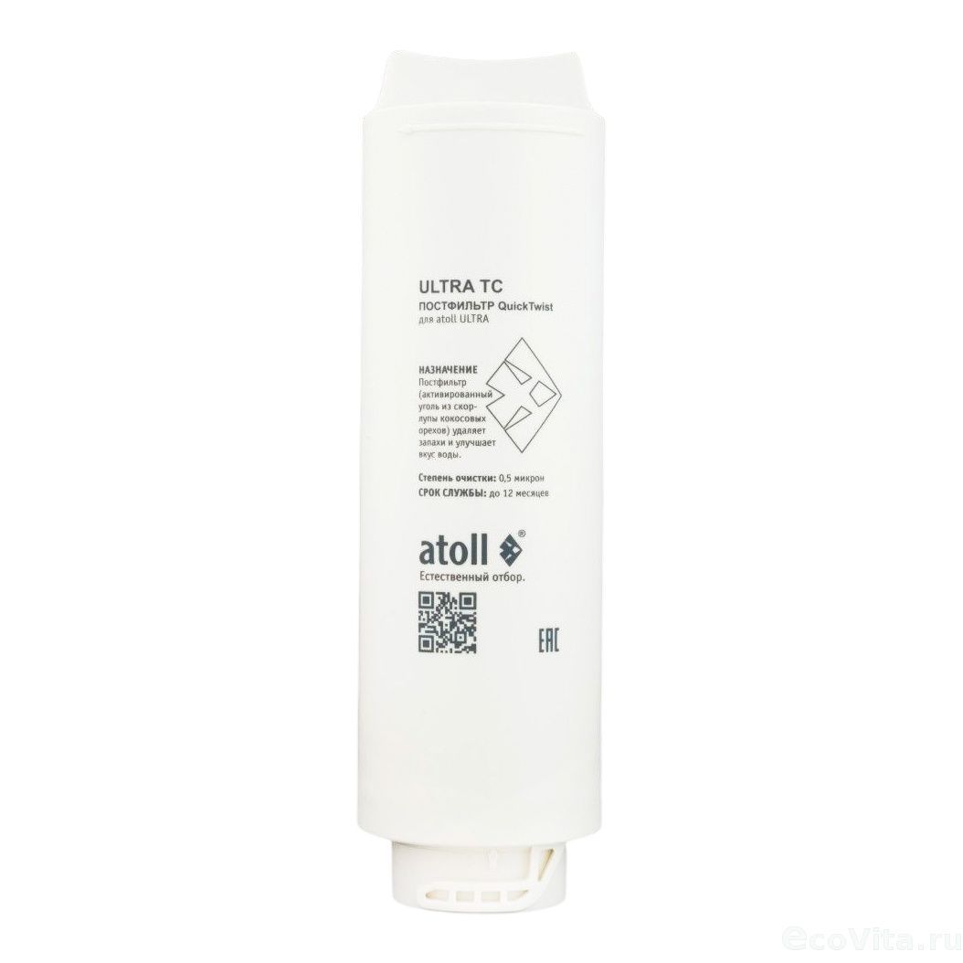 Картридж Atoll ULTRA TC выполнен из высокопористого активированного угля, полученного из скорлупы кокосового ореха 0,5 мкм, что позволяет эффективно устранять посторонние запахи и улучшать вкус воды, одновременно очищая жидкость от остаточного содержания растворённых газов и органических примесей.