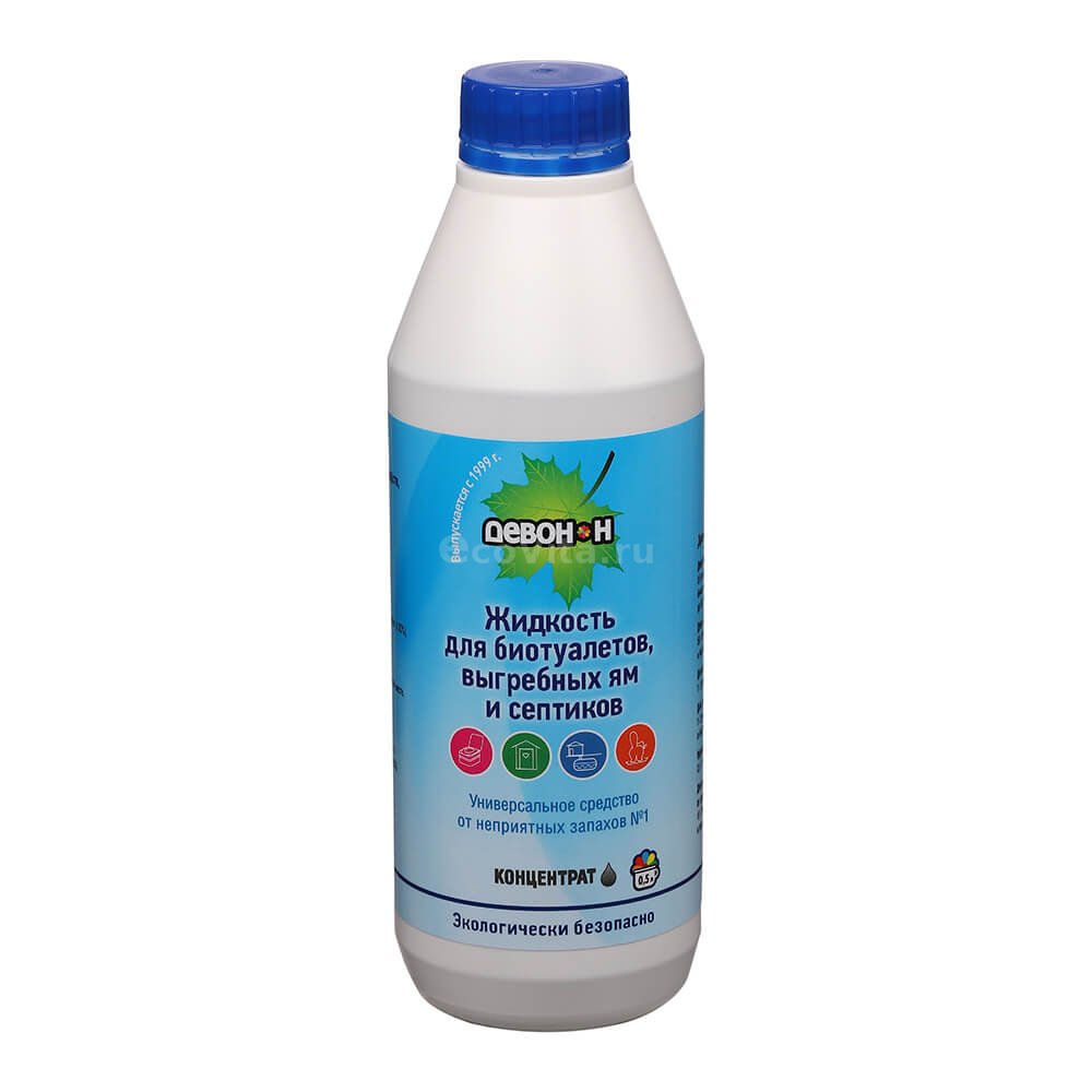 Концентрированное средство Девон-Н 0.5 литра - универсальный уничтожитель запахов широкого спектра действия в виде жидкого концентрата. Подходит для использования в дачных туалетах, выгребных ямах, для удаления рвотных, фекальных запахов (в садовых и дачных туалетах, а также от домашних животных), а также неприятных запахов гниения (например, в компосте). Разлагает и химически связывает все пахучие компоненты.