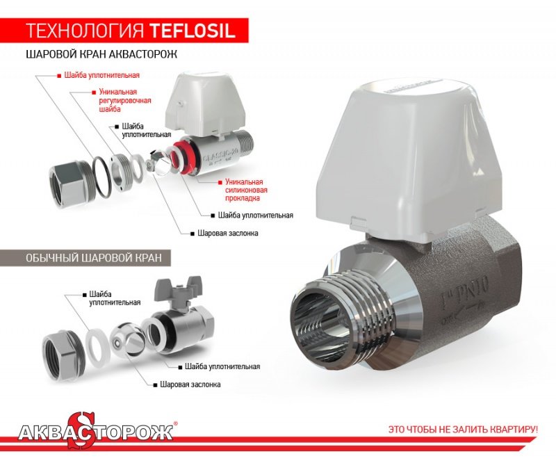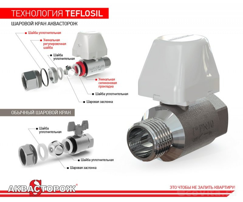 "Умные краны" Аквасторож обладают высокой скоростью закрытия, прочным полнопроходным корпусом и полным контролем работоспособности.