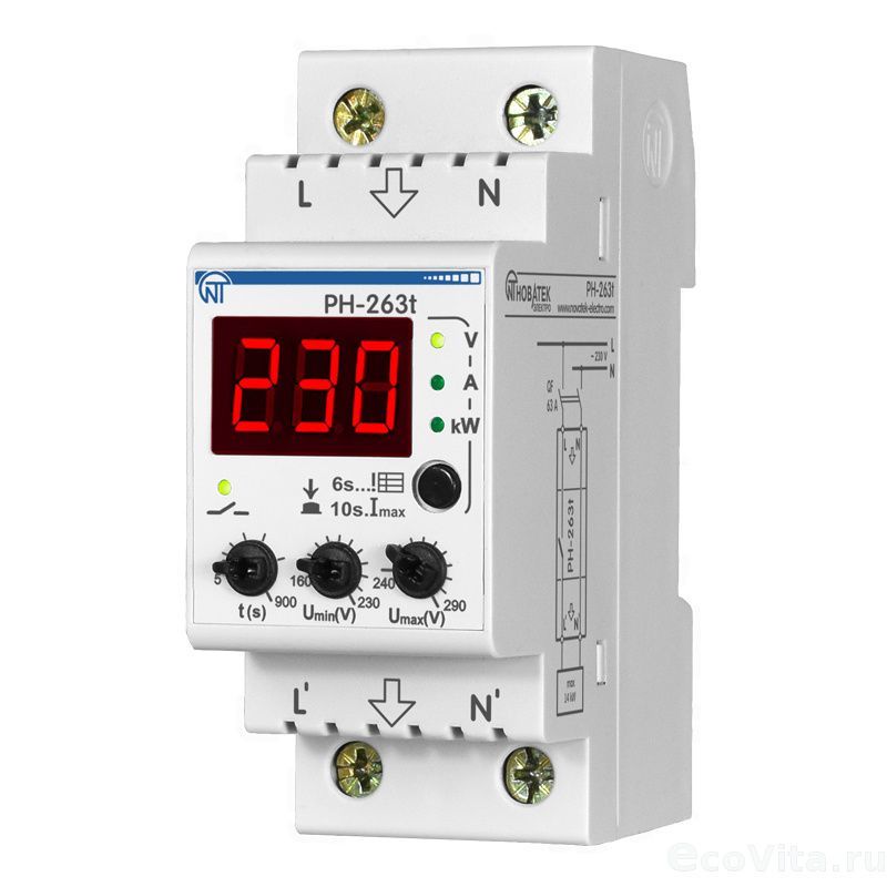 Реле напряжения Новатек-Электро РН-263Т предназначено для защиты бытового и промышленного электрооборудования (холодильников. кондиционеров, стиральных машин, теле-, видео- и аудиотехники) от недопустимых колебаний напряжения в сети, последствий обрыва нейтрали.
