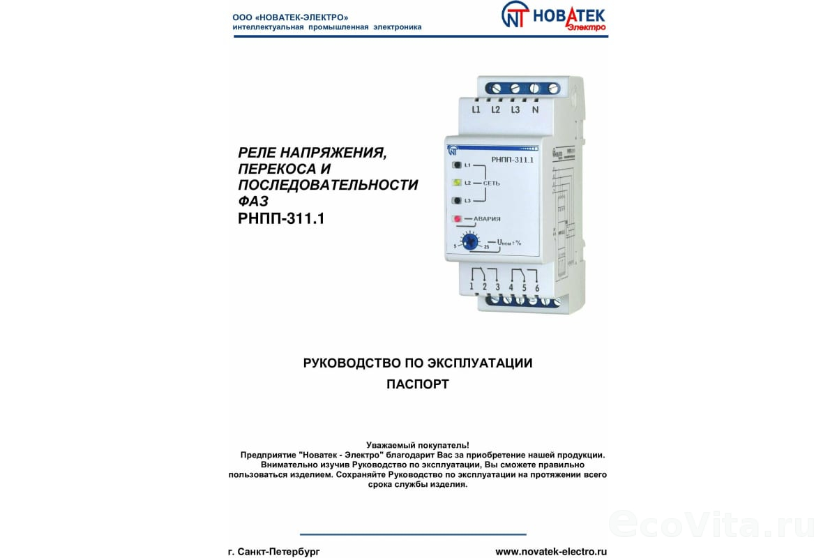 Реле напряжения, перекоса и последовательности фаз РНПП-311.1 предназначено для отключения нагрузки при:
