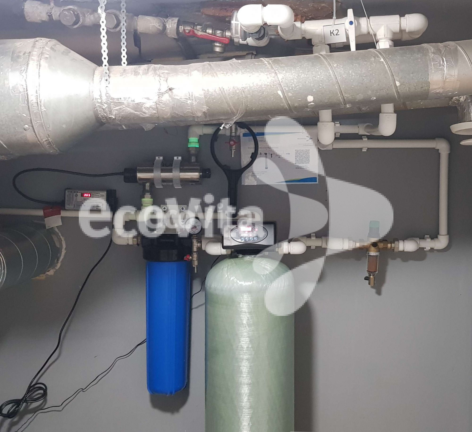 Установка системы очистки воды для кафе в г. Санкт-Петербург. Анализ воды показал в системе городского водоснабжения превышение показателей "железо общее" и "мутность".