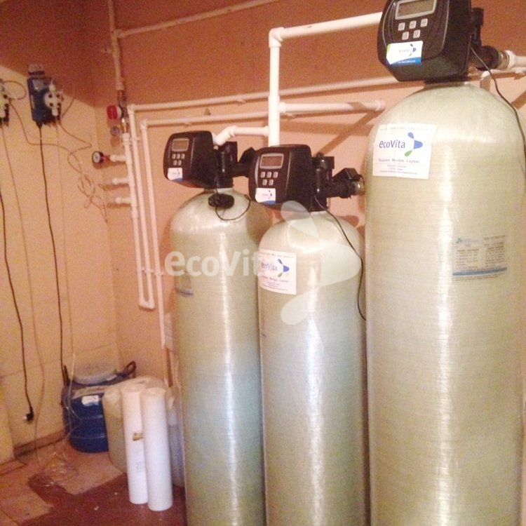 В поток воды с помощью насоса пропорционального дозирования осуществляется введение окислителя. Полученные в результате данной процедуры осадки удаляются с помощью фильтра, загруженного алюмосиликатом. Марганец, растворенное железо устраняются путем применения фильтра с загрузкой из ионообменного материала. 3-ий фильтр с активированным углем производит финишную очистку, улучшая органолептические свойства воды. После напорных фильтров установлен корпус с полипропиленовым картриджем, который препятствует выносу фильтрующих сред из фильтров. На выходе из системы установлен ультрафиолетовый стерилизатор, который полностью уничтожает все бактерии и вирусы.