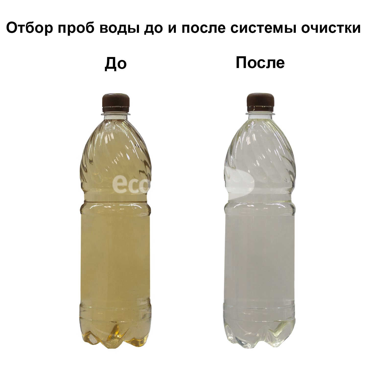 Основные проблемы выявленные в результате анализа - превышение норм СанПИН по цветности (157 градусов), ПМО (окисляемость перманганатная - 22 мг O2/л), железу (1,7 мг/л) и марганецу (0,17 мг/л). В поток воды с помощью насоса пропорционального дозирования осуществляется введение окислителя. Полученные в результате данной процедуры осадки удаляются с помощью фильтра, загруженного алюмосиликатом. Марганец, растворенное железо устраняются путем применения фильтра с загрузкой из ионообменного материала. 3-ий фильтр с активированным углем производит финишную очистку, улучшая органолептические свойства воды. После напорных фильтров установлен корпус с полипропиленовым картриджем, который препятствует выносу фильтрующих сред из фильтров. На выходе из системы установлен ультрафиолетовый стерилизатор, который полностью уничтожает все бактерии и вирусы.
