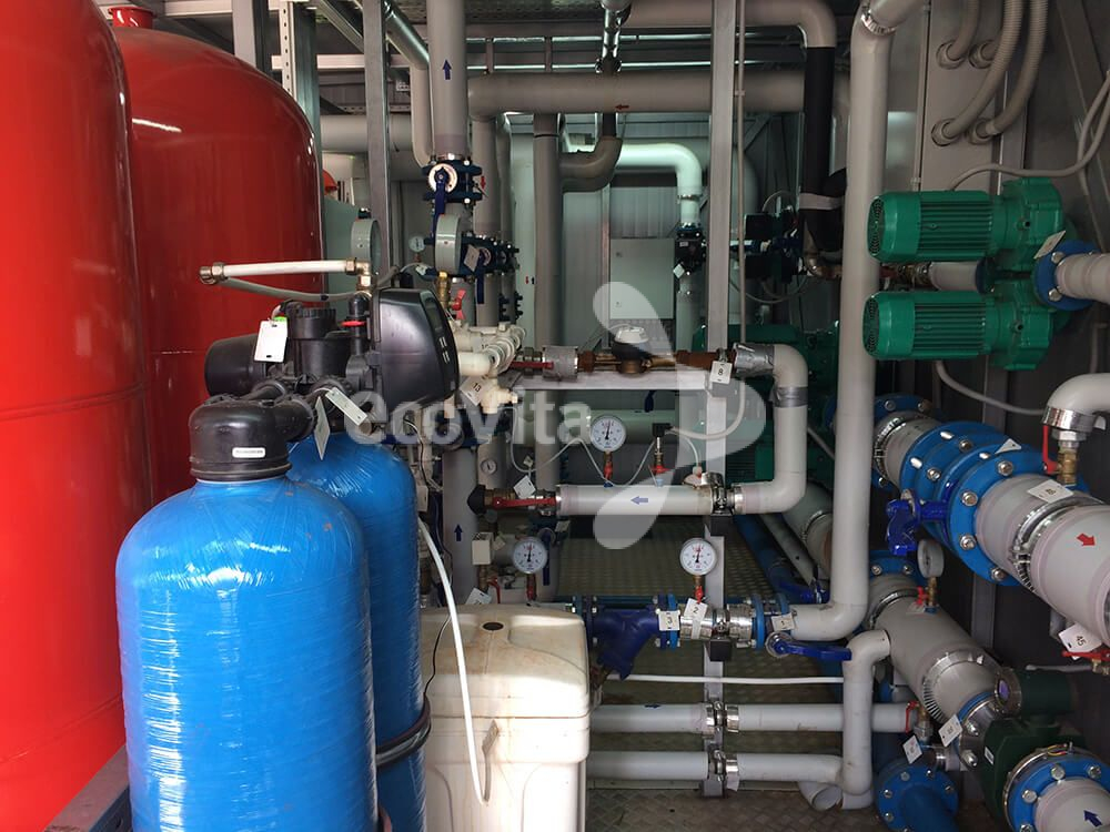 Нашей компанией была подобрана реагентная программа, для защиты котла и других частей системы ГВС от коррозии. Установлен насос дозатор пропорционального дозирования Seko Tekna Evo TPG 603 с импульсным расходомером. Дозатор добавляет в воду специально подобранный реагент Jurbysoft 24.