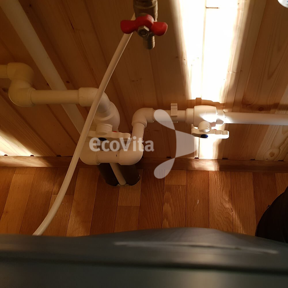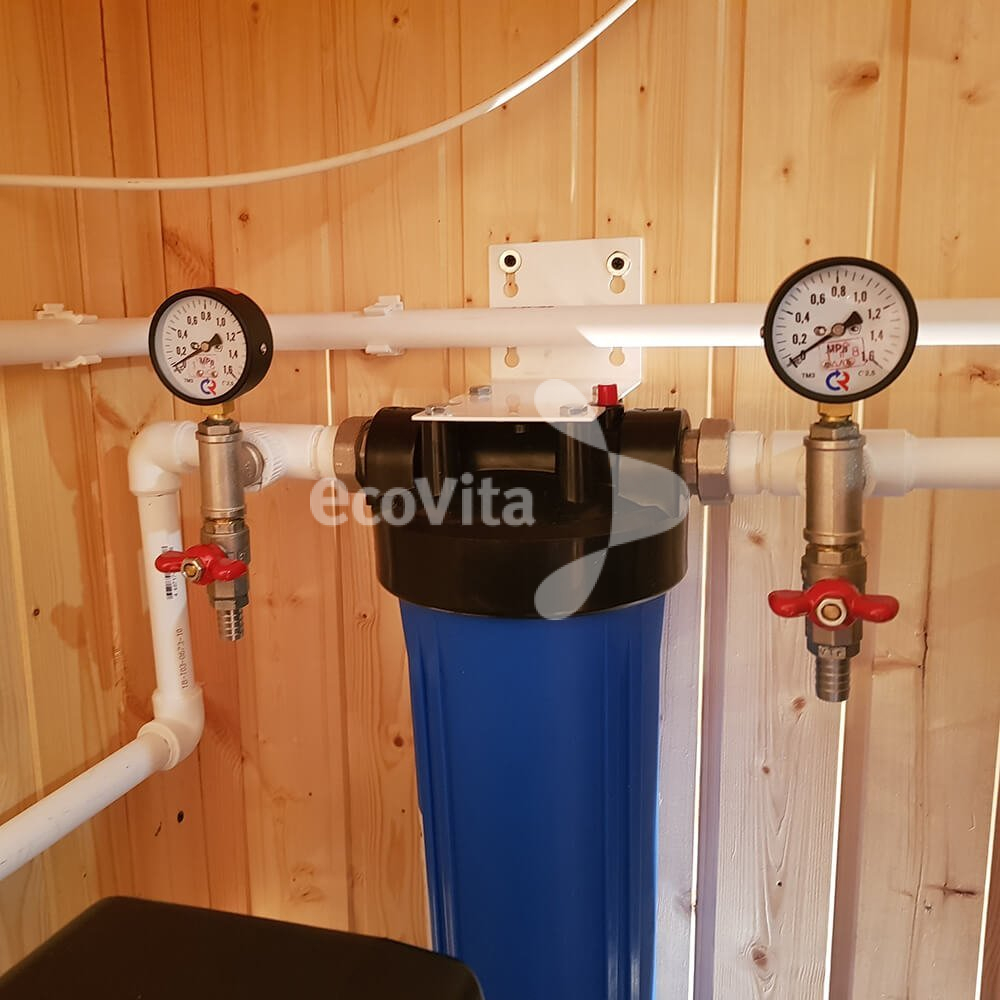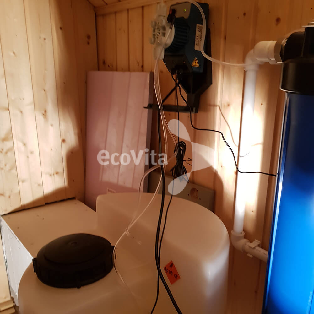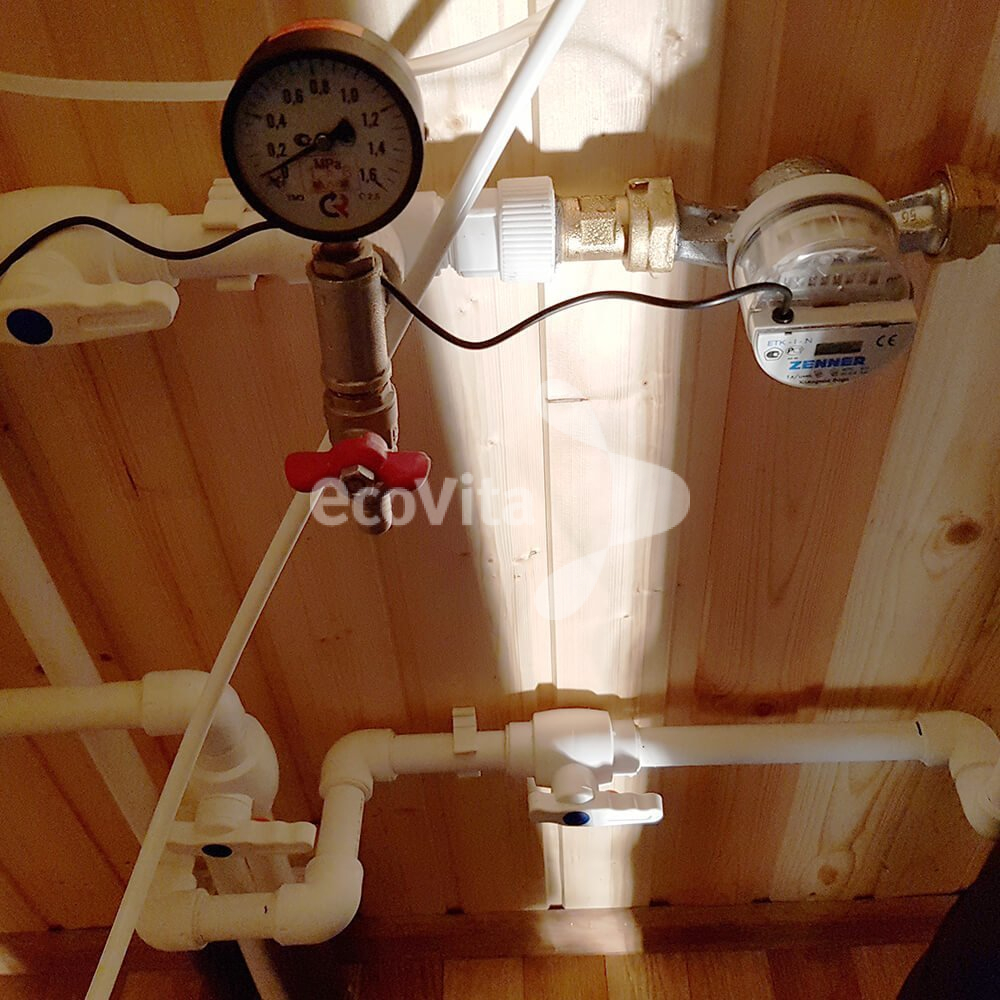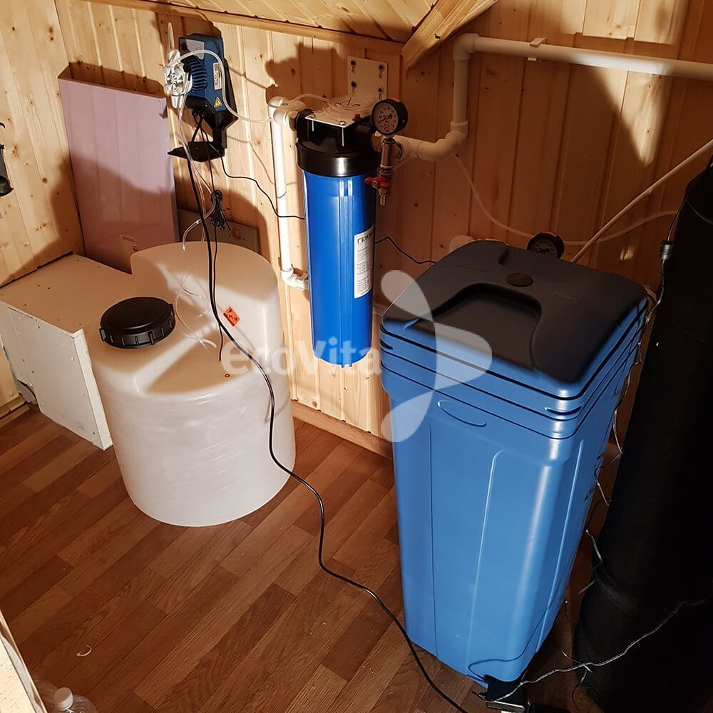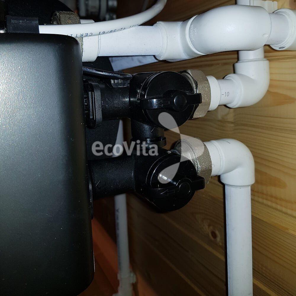 - Система фильтрации Ecovita EVF с автоматическим управлением установлена для удаления железа, марганца, сероводороад и механических взвесей.