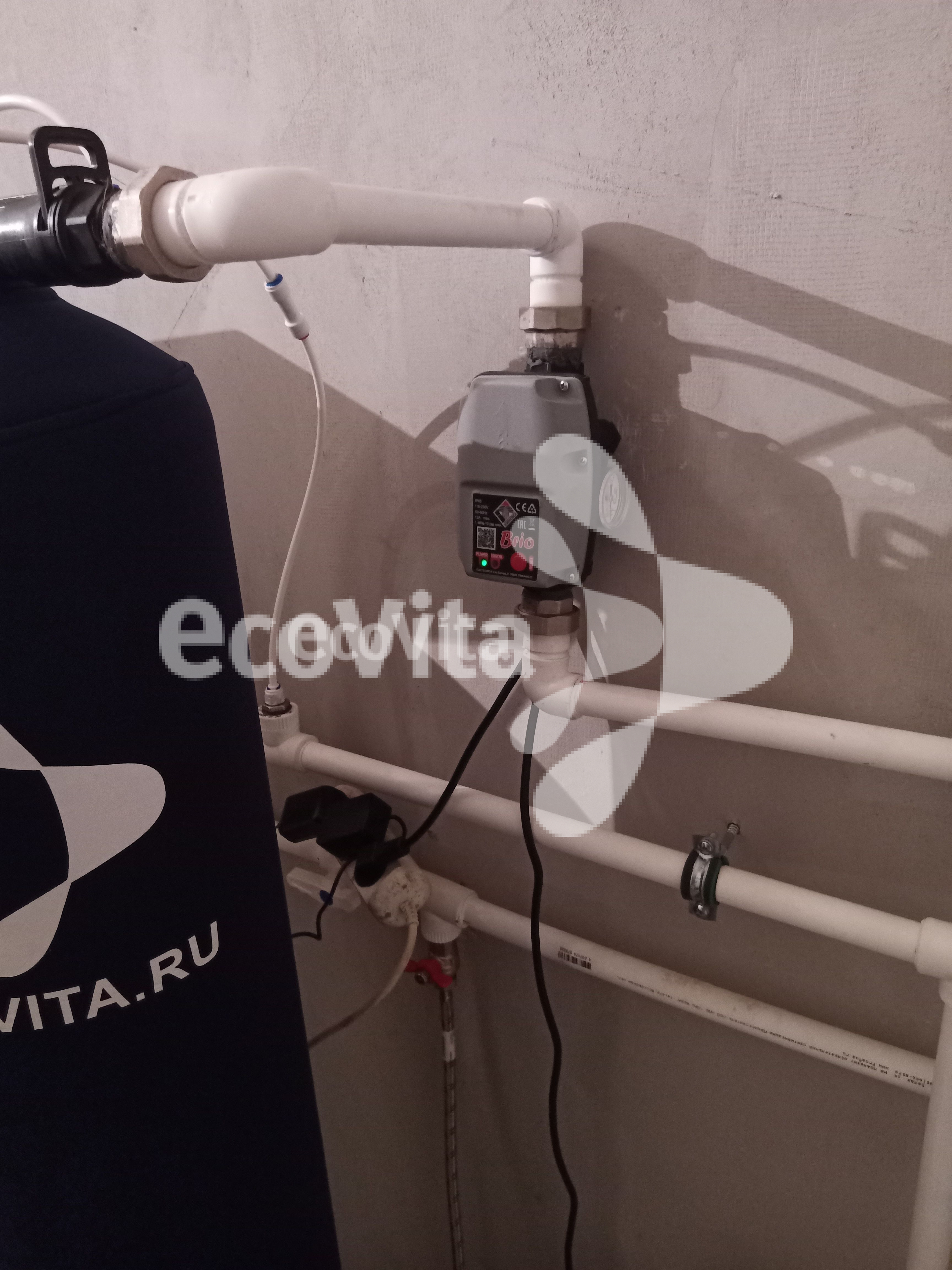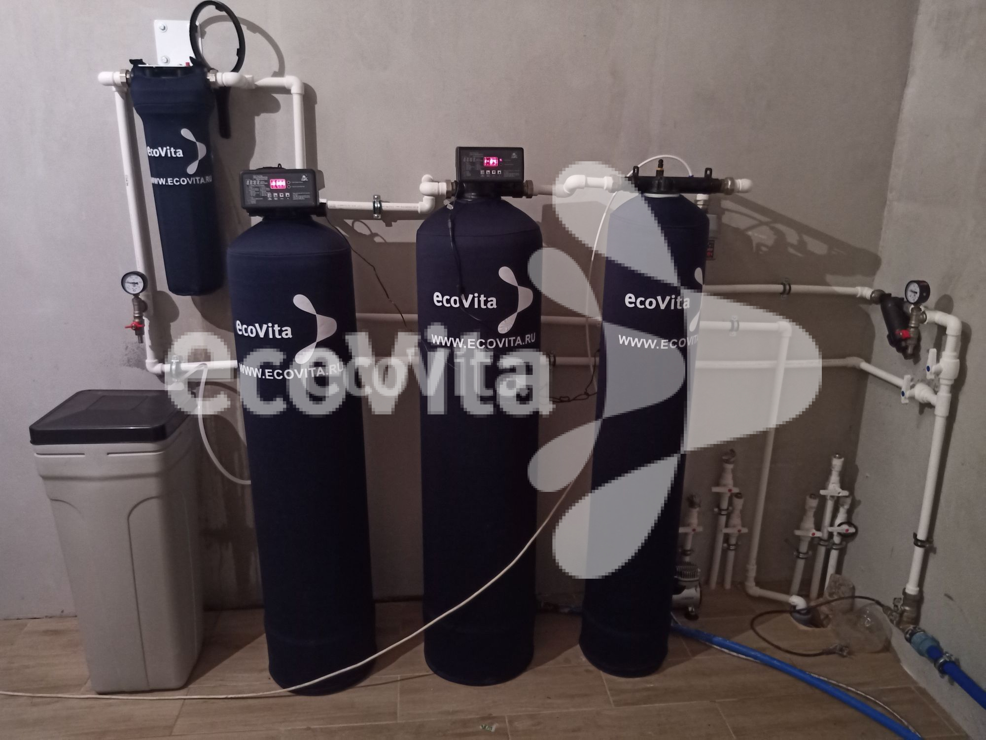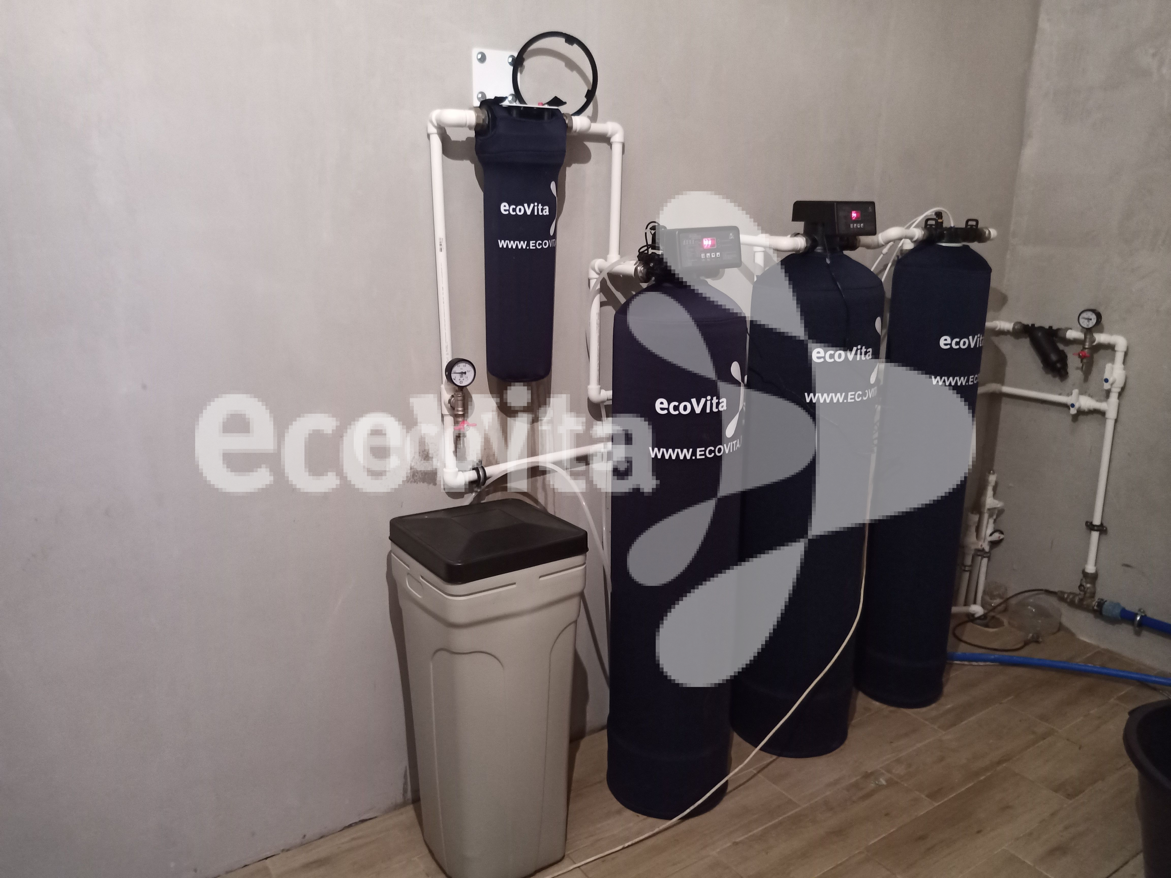 • Автоматический умягчитель Ecovita EVF 12 RM с ионообменной смолой Seplite SC 130 для снижения уровня жесткости воды;