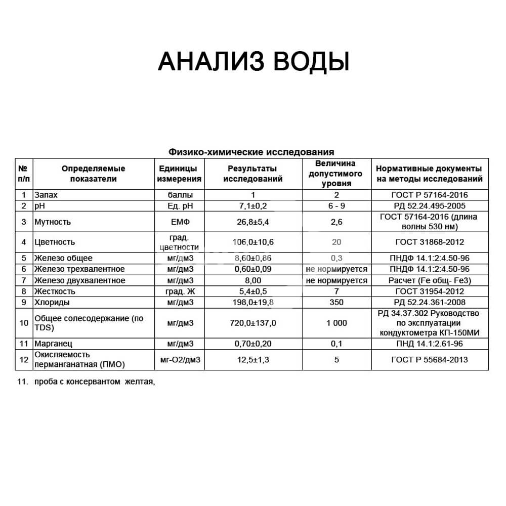 В воде обнаружено превышение нормативов по железу, марганцу, мутности, цветности, ПМО.