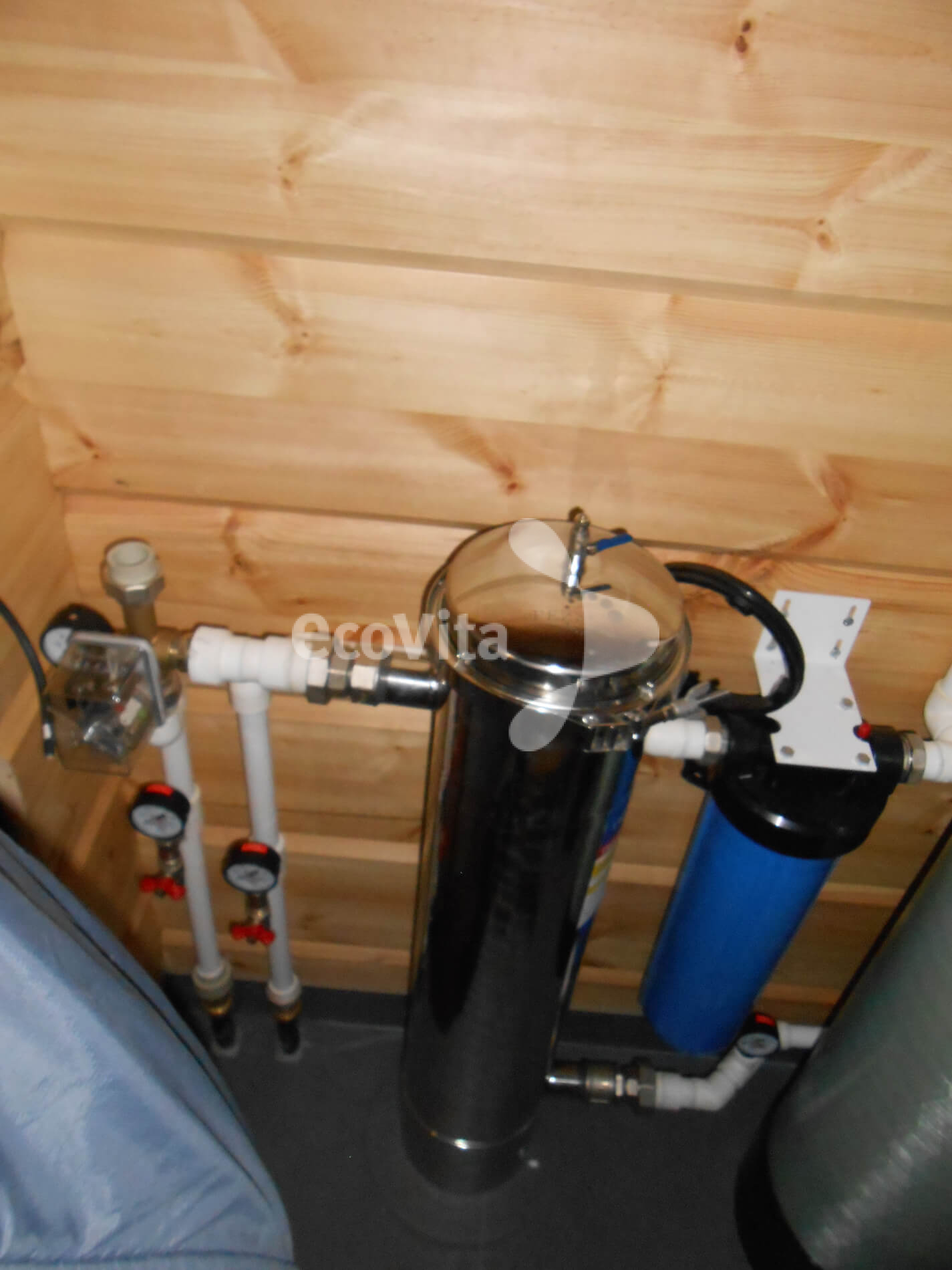 - Засыпной фильтр Ecovita EVF 13 CT с осветляющей загрузкой. Так же удаляет механические примеси.