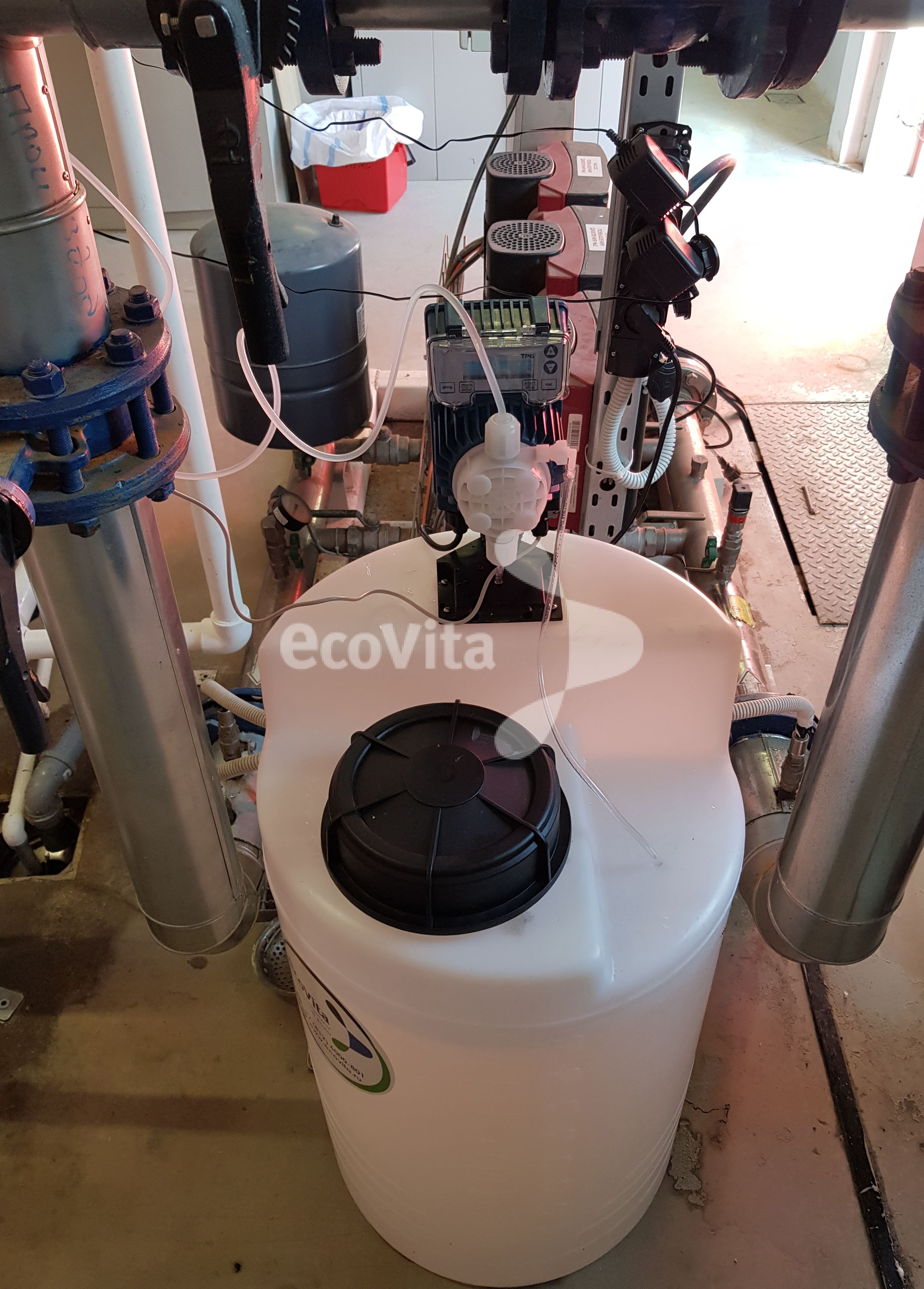 Для защиты линии приготовления горячей воды используется комплекс дозирования реагента. Дозирующийся ингибитор коррозии пищевого класса предотвращает процессы накипеобразования и коррозии в системах питьевого водоснабжения.