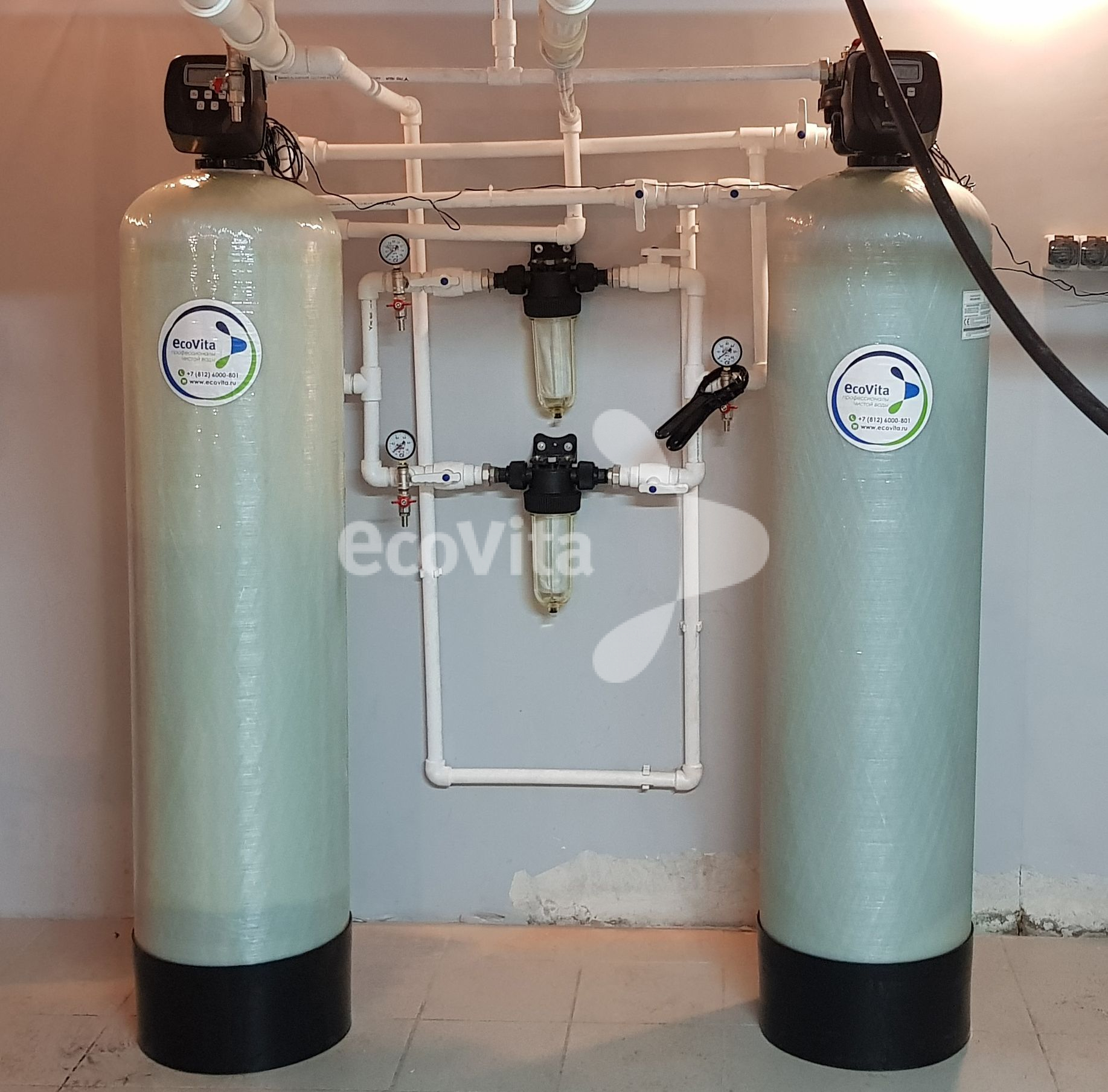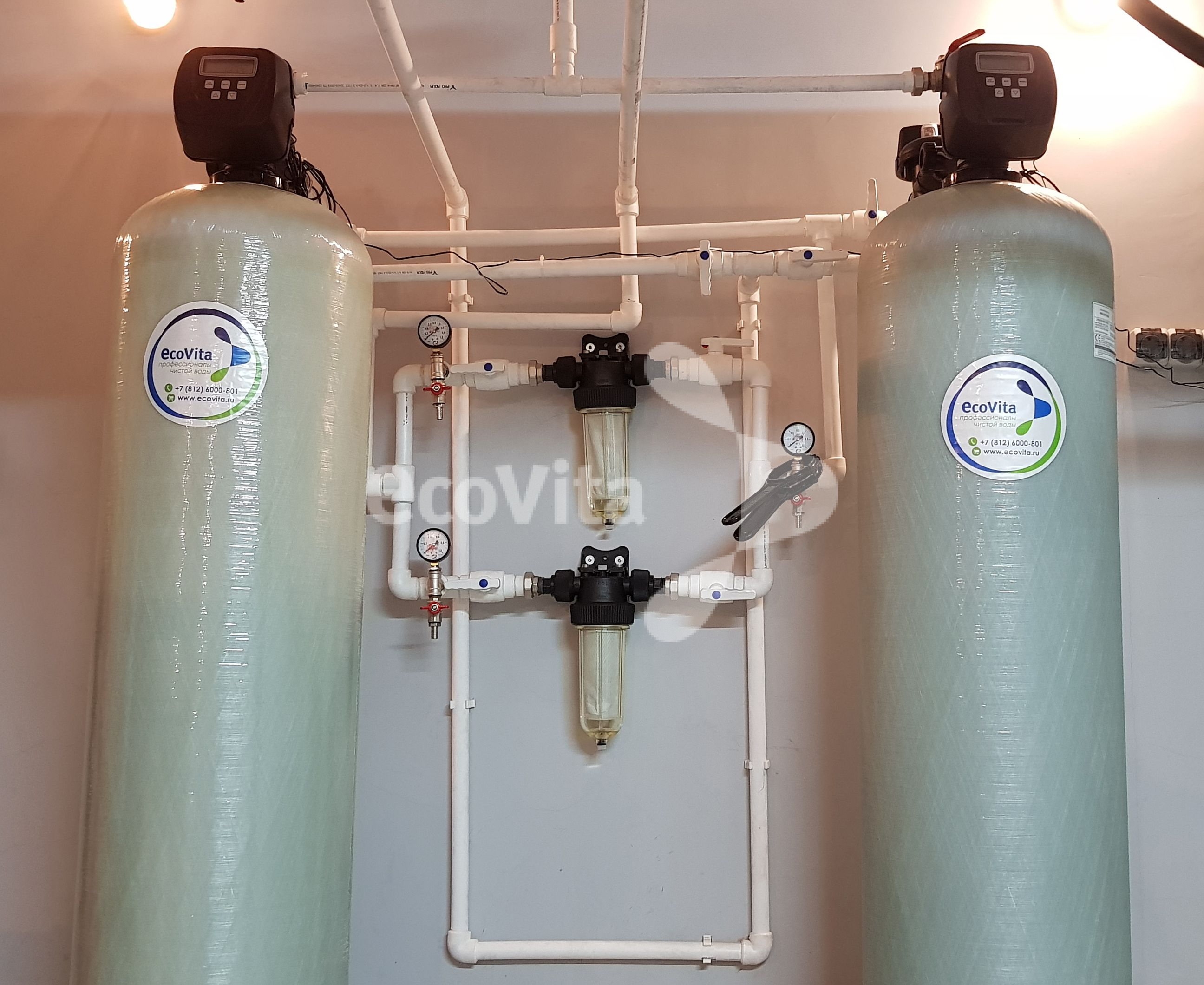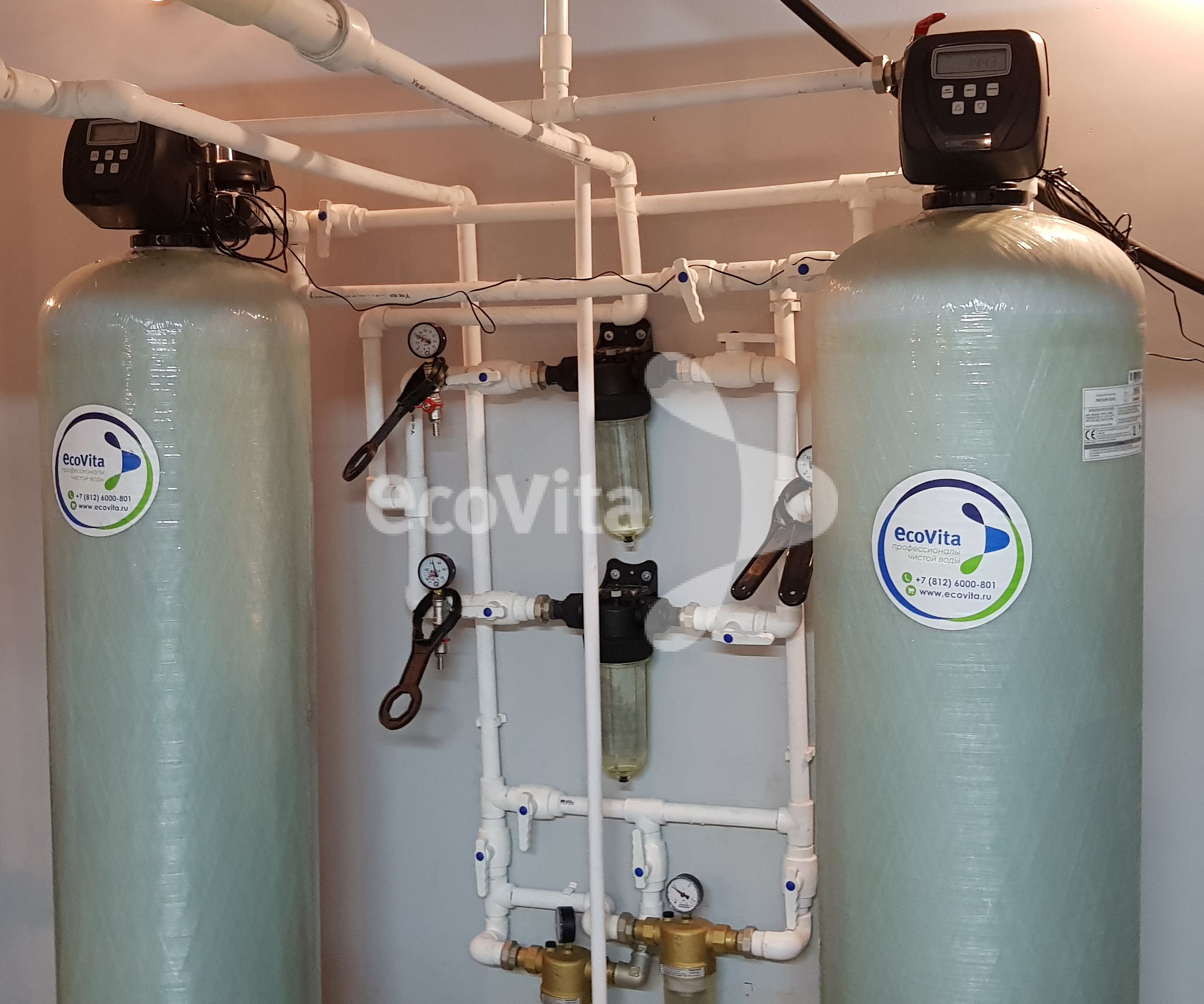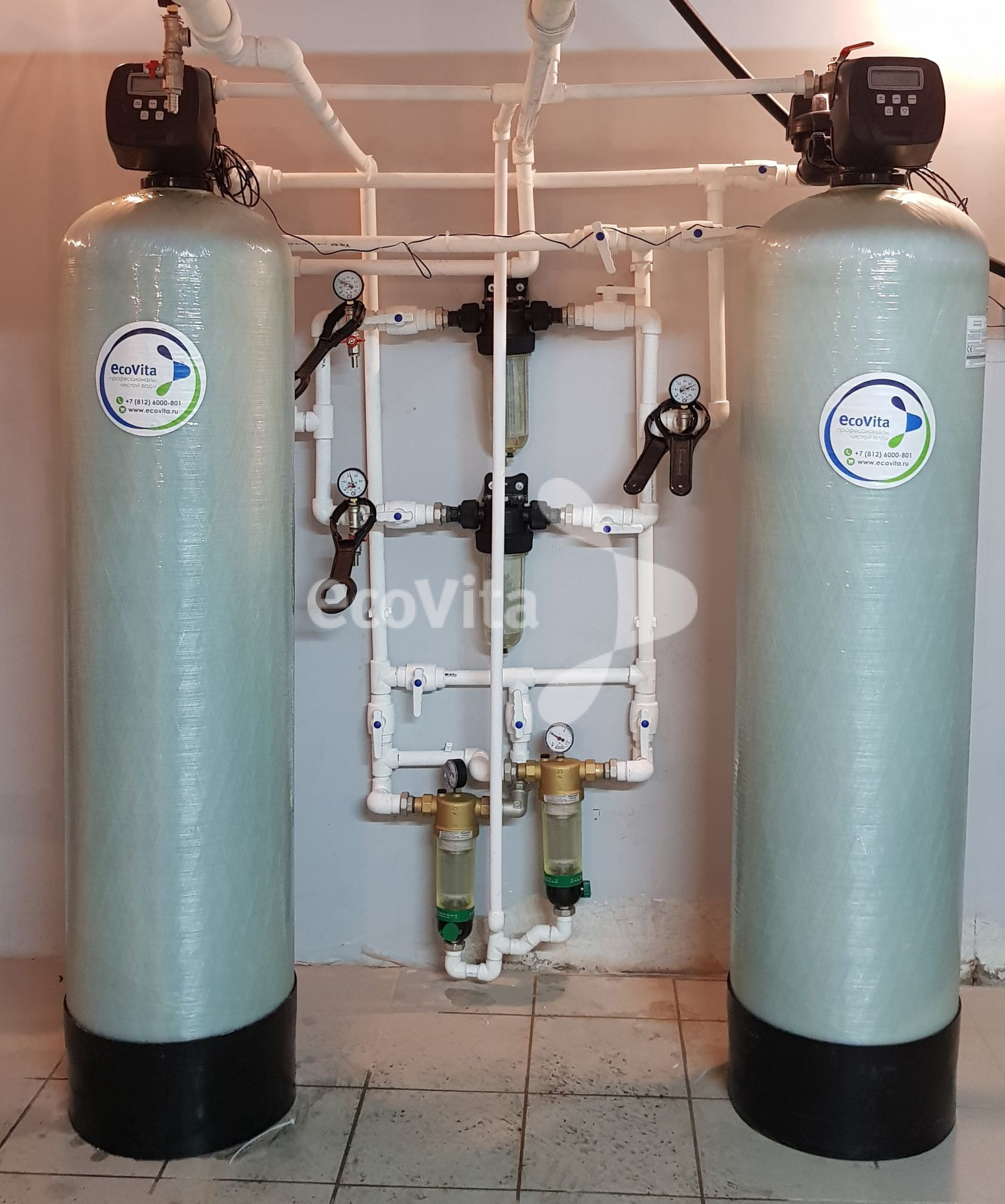 Монтаж системы очистки в многоквартирном доме в г. Санкт-Петербург. Заказчику требовалась очистка воды из системы холодного водоснабжения с превышениями показателей «железо» и «мутность» до питьевого уровня.